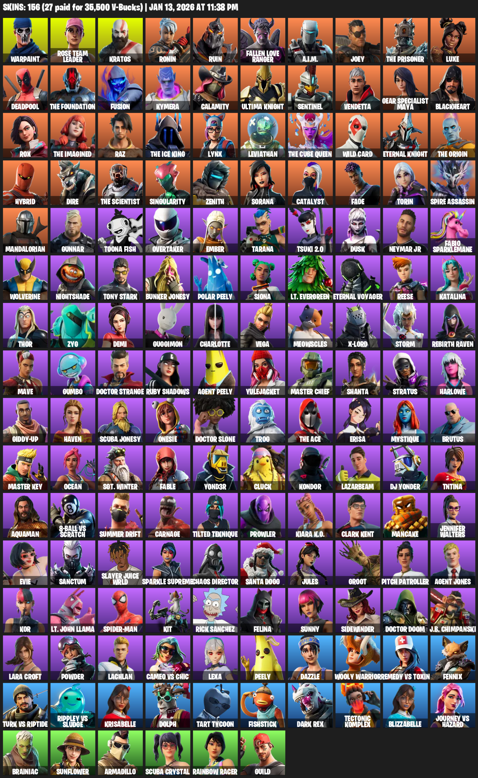 Gear Specialist Maya, Lara Croft, Warpaint, Rose Team Leader, Kratos, Ronin, Ruin, Fallen Love Ranger, A.I.M., Joey, The Prisoner, Luxe, Deadpool, Fusion, Kymera, Calamity, Ultima Knight, Sentinel, Vendetta