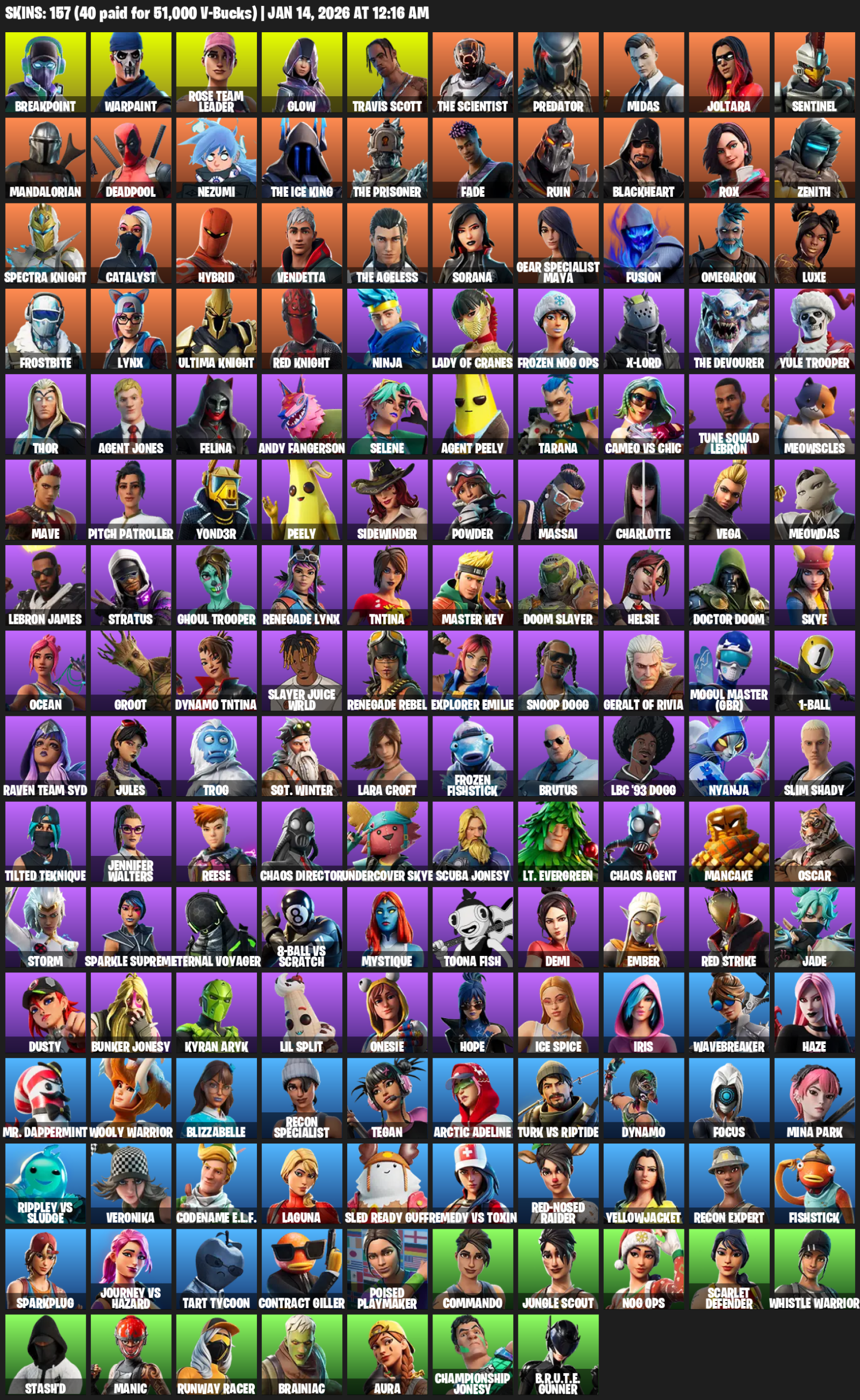 [PC/PSN/XBOX] | 157 skins | Merry Mint Axe | OG STW | Travis Scott | Lara Croft | Breakpoint | Warpaint | Rose Team Leader | Glow | #IHA7196