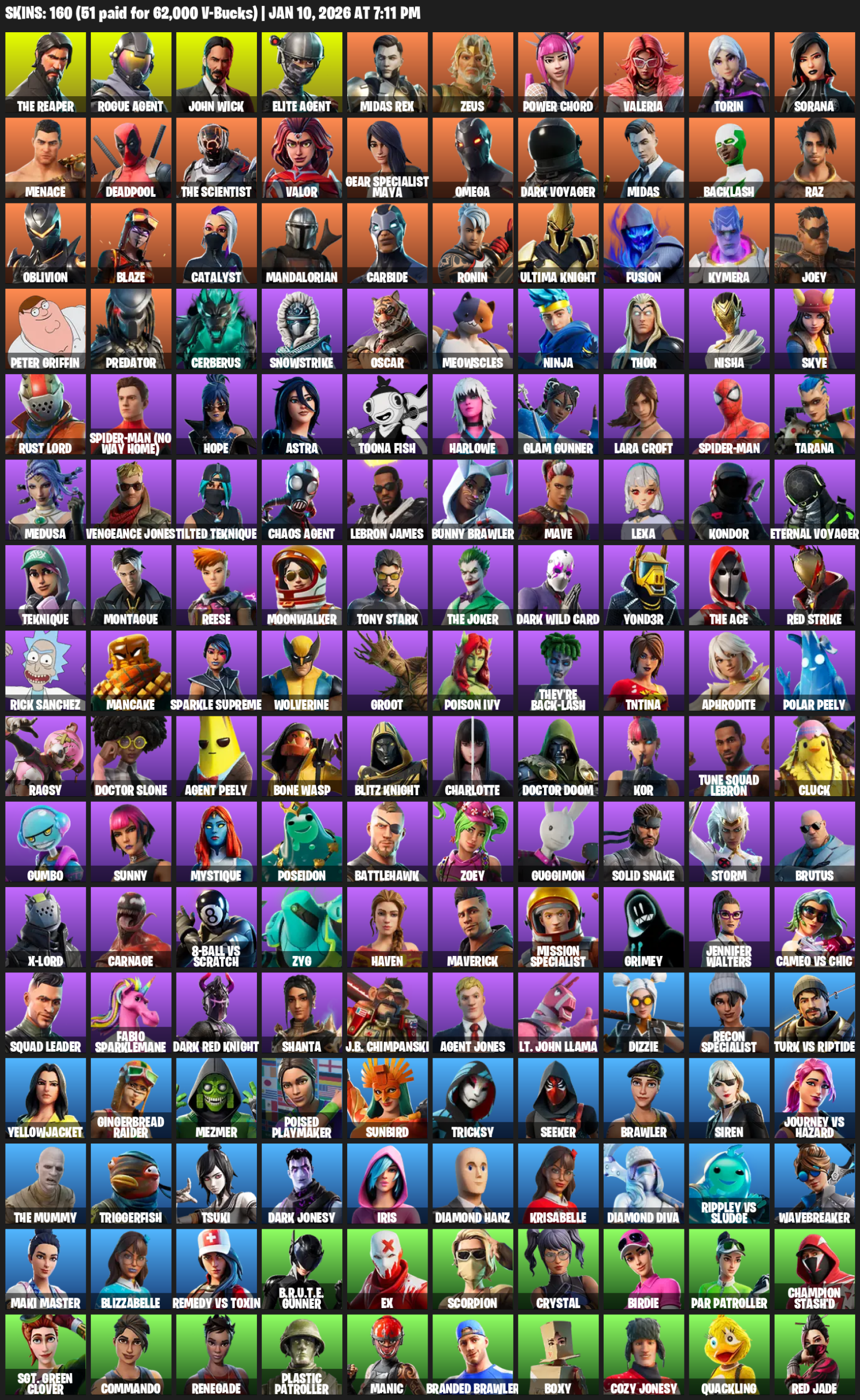 Level 2062 Fortnite Account | 160 Skins | Full Access | Instant Delivery