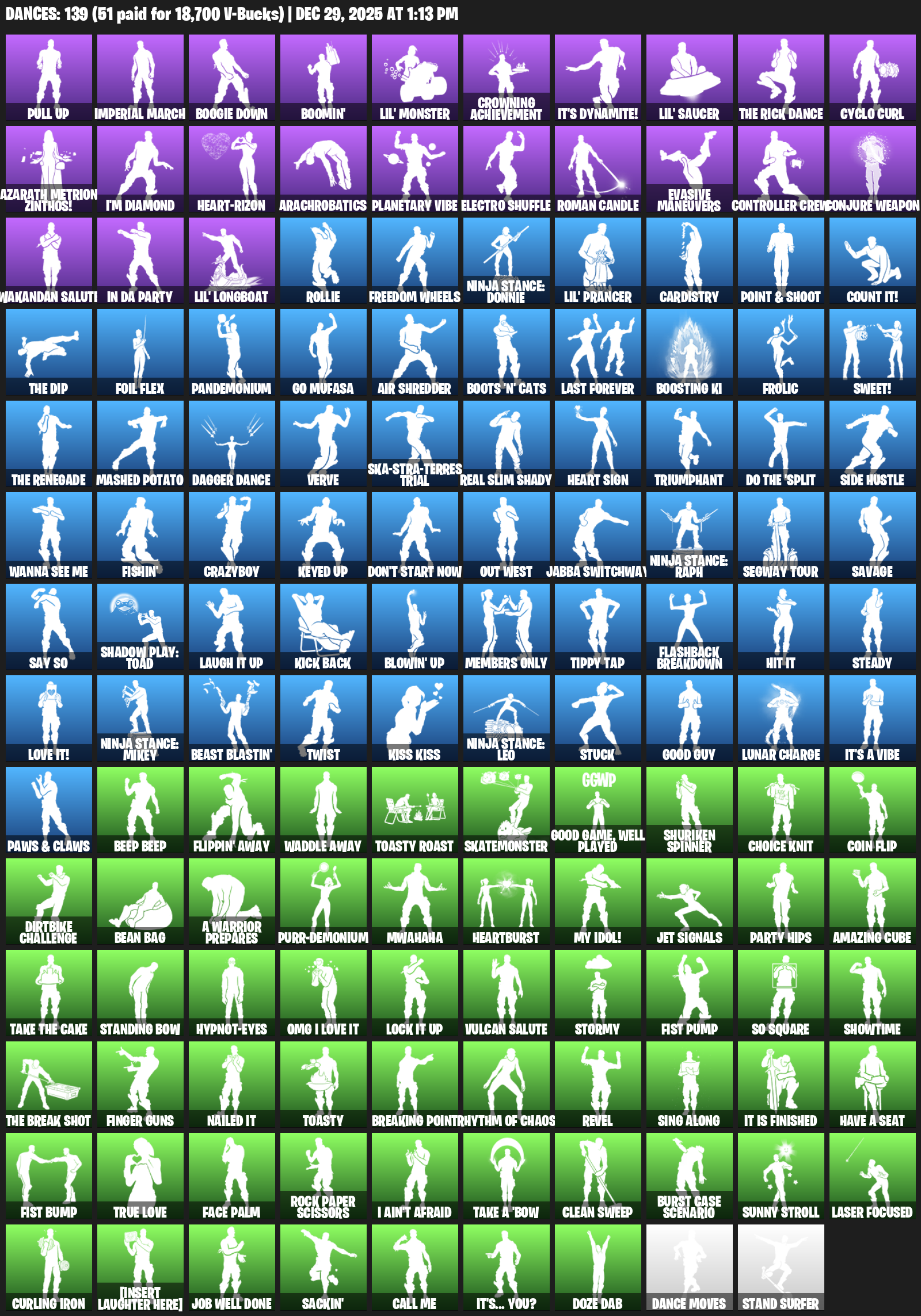 Pull Up, Imperial March, Boogie Down, Boomin’, Lil’ Monster, Crowning Achievement, It’s Dynamite!, Cyclo Curl, Azarath Metrion Zinthos!, I’m Diamond, Heart-rizon, Arachrobatics, Planetary Vibe, Electro Shuffle, Roman Candle, Evasive Maneuvers, Controller Crew, Conjure Weapon