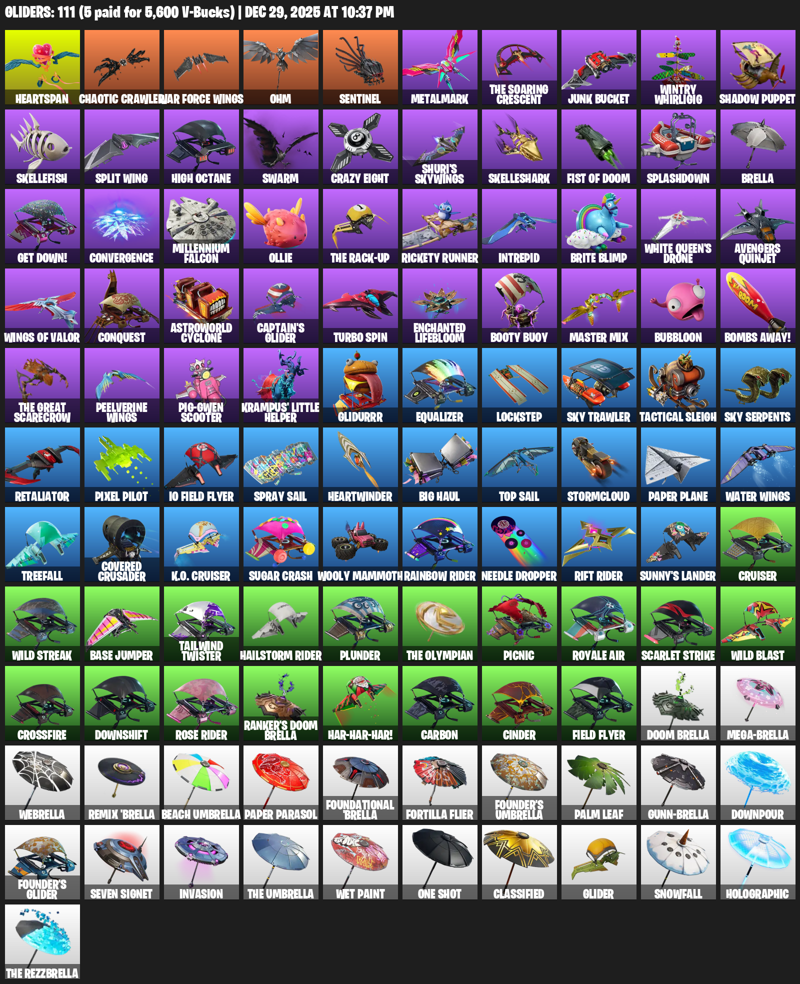 Heartspan, Chaotic Crawler, War Force Wings, Ohm, Sentinel, Metalmark, Junk Bucket, Wintry Whirligig, Shadow Puppet, Skellefish, Split Wing, Swarm, Crazy Eight, Shuri’s Skywings, Skelleshark, Fist of Doom, Splashdown, Brella