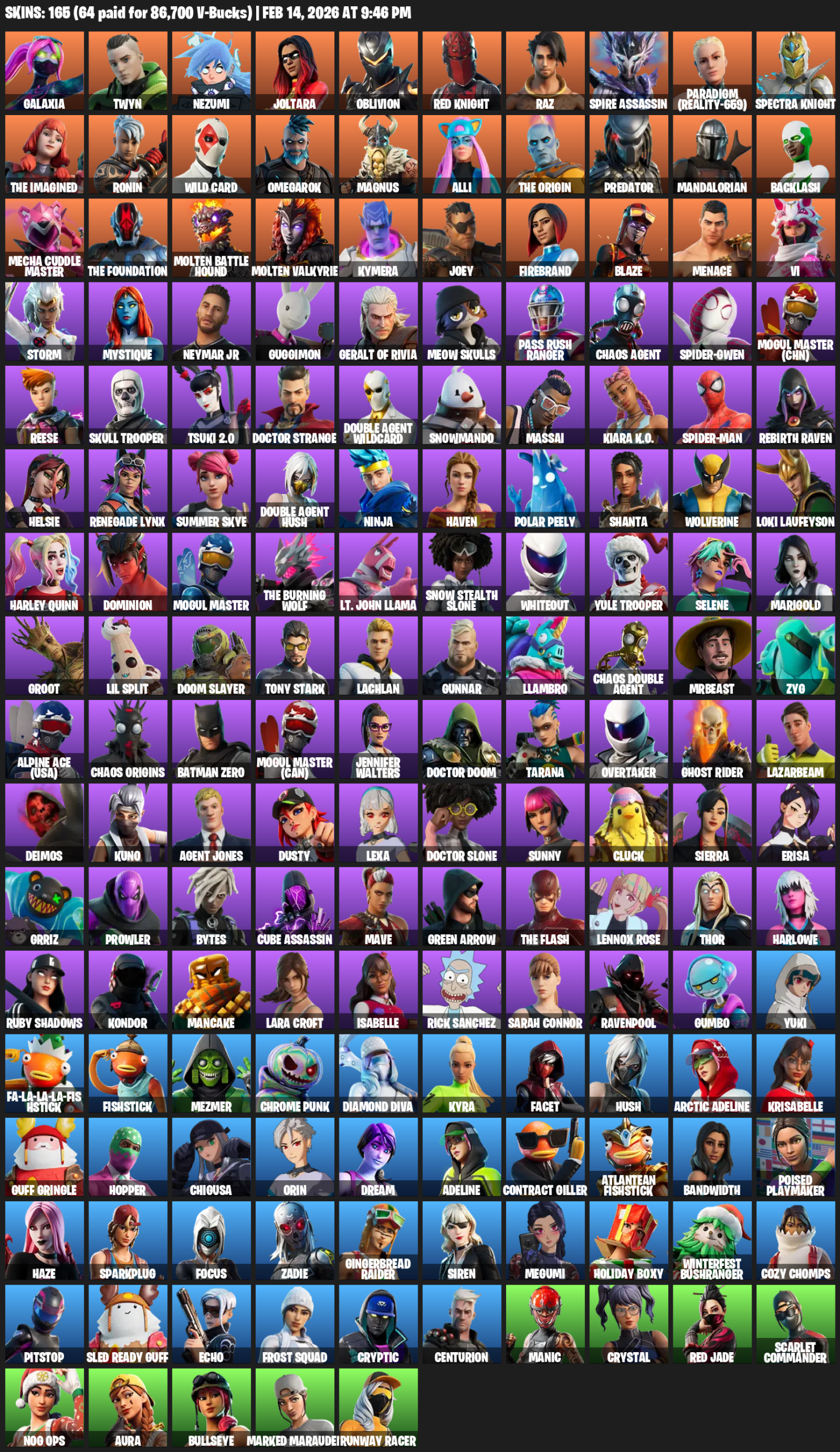 [PC/PSN/XBOX] | 165 skins | 1150 V-bucks | Leviathan Axe | Lara Croft | Galaxia | Twyn | Nezumi | Joltara | Oblivion | Red Knight | Raz | #WXW1176