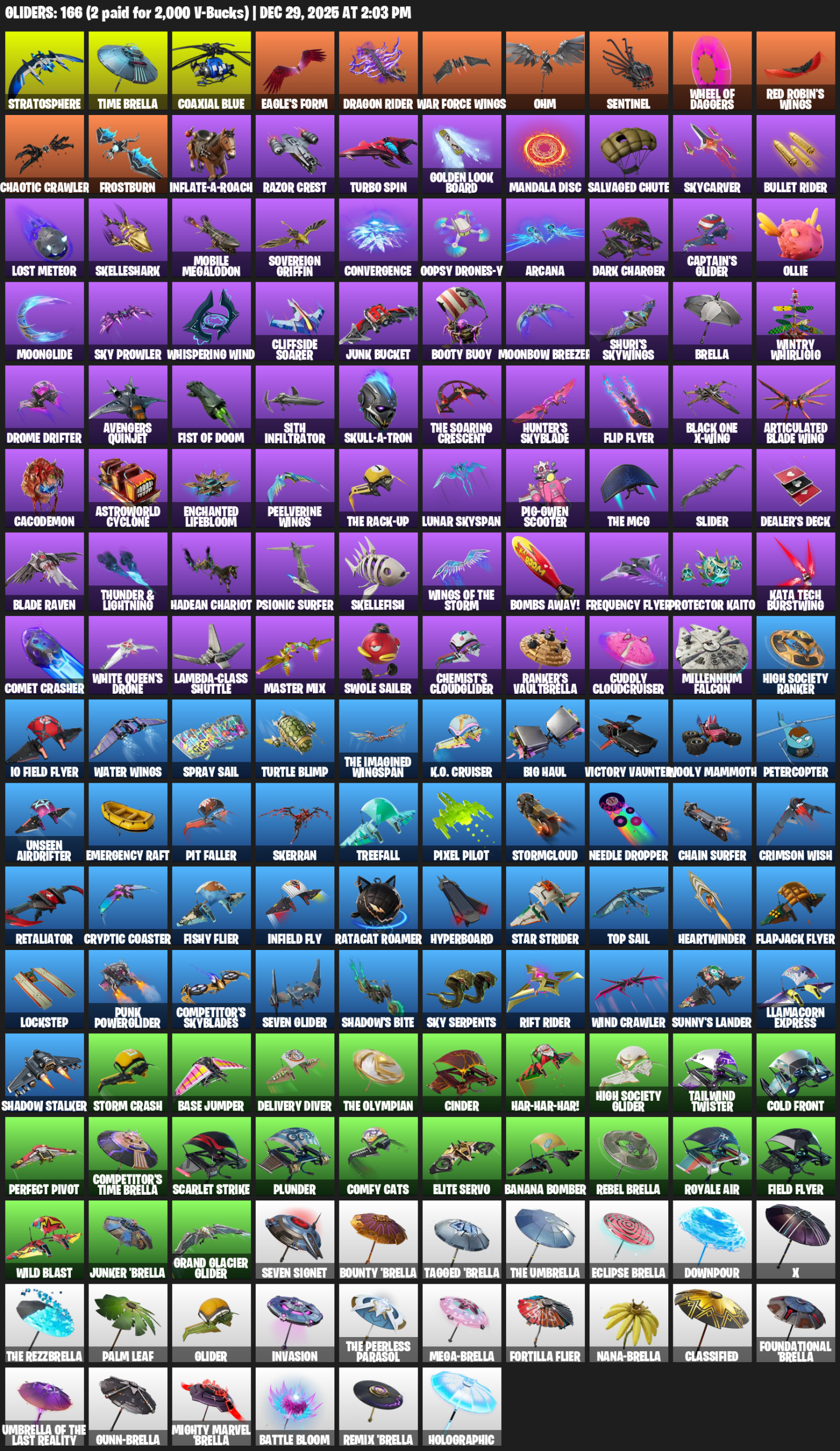 Stratosphere, Time Brella, Coaxial Blue, Eagle’s Form, Dragon Rider, War Force Wings, Ohm, Sentinel, Chaotic Crawler, Frostburn, Inflate-A-Roach, Razor Crest, Turbo Spin, Golden Look Board, Mandala Disc, Salvaged Chute, Skycarver