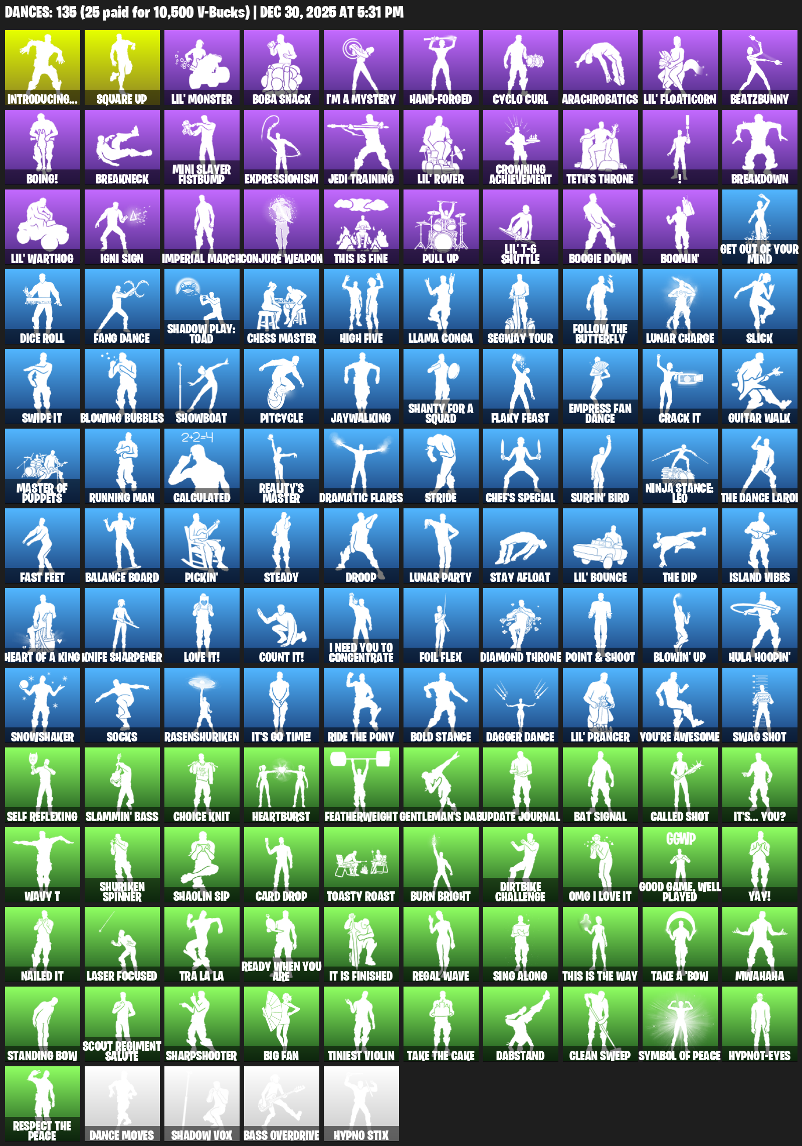 Introducing…, Square Up, Lil’ Monster, Boba Snack, I’m a Mystery, Hand-Forged, Cyclo Curl, Arachrobatics, BeatzBunny, Boing!, Breakneck, Mini Slayer Fistbump, Expressionism, Jedi Training, Crowning Achievement, Teth’s Throne, !, Breakdown
