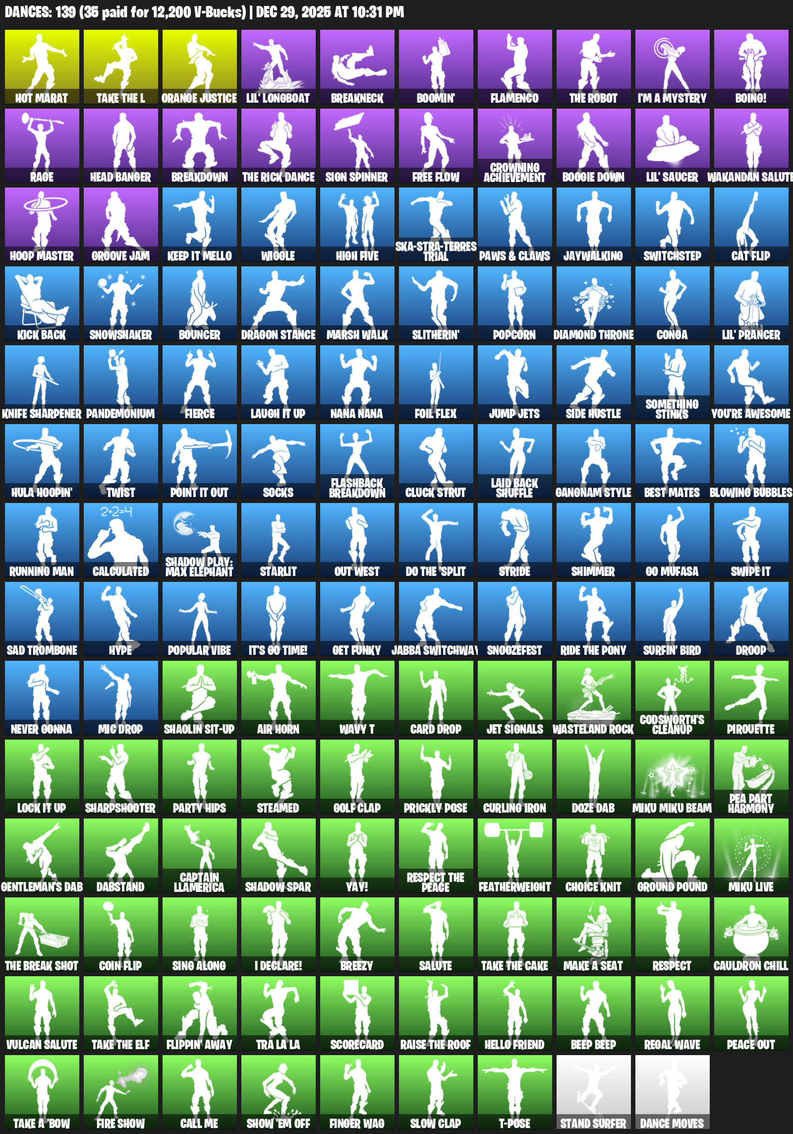 Hot Marat, Lil’ Longboat, Breakneck, Boomin’, Flamenco, I’m a Mystery, Boing!, Rage, Head Banger, Breakdown, Sign Spinner, Free Flow, Crowning Achievement, Boogie Down, Wakandan Salute