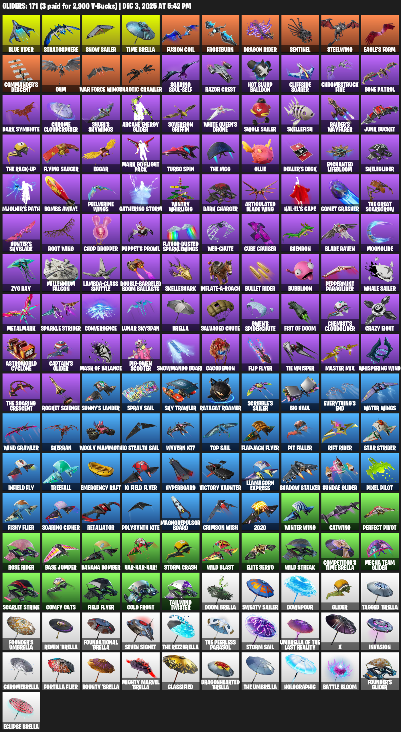 Blue Viper, Stratosphere, Snow Sailer, Time Brella, Fusion Coil, Frostburn, Dragon Rider, Steelwing, Eagle’s Form, Commander’s Descent, Ohm, War Force Wings, Chaotic Crawler, Soaring Soul-Self, Razor Crest, Hot Slurp Balloon, Cliffside Soarer, Chromestruck Fire, Bone Patrol