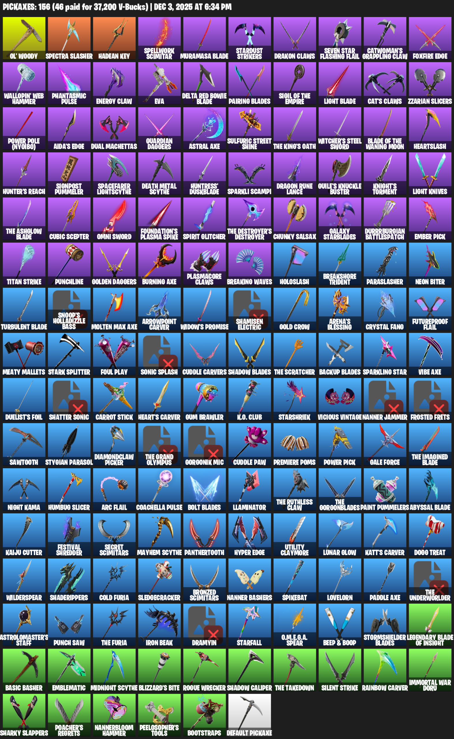 Ol’ Woody, Hadean Key, Spellwork Scimitar, Muramasa Blade, Stardust Strikers, Drakon Claws, Seven Star Flashing Flail, Catwoman’s Grappling Claw, Foxfire Edge, Wallopin’ Web Hammer, Phantasmic Pulse, EVA, Pairing Blades, Zzarian Slicers
