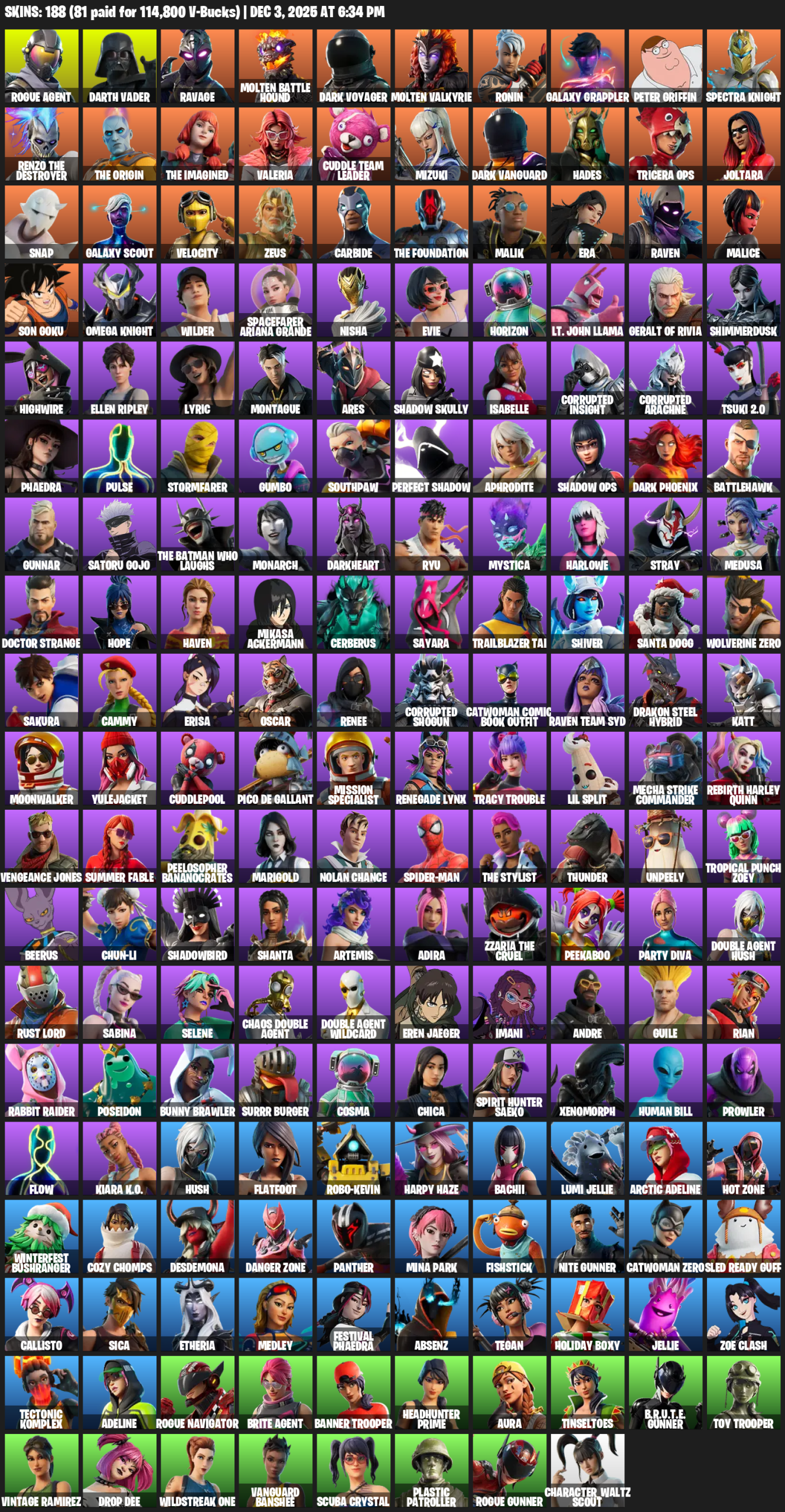 Rogue Agent, Darth Vader, Ravage, Molten Battle Hound, Dark Voyager, Ronin, Galaxy Grappler, Peter Griffin, Spectra Knight, Renzo the Destroyer, Valeria, Cuddle Team Leader, Mizuki, Hades, Tricera Ops, Joltara