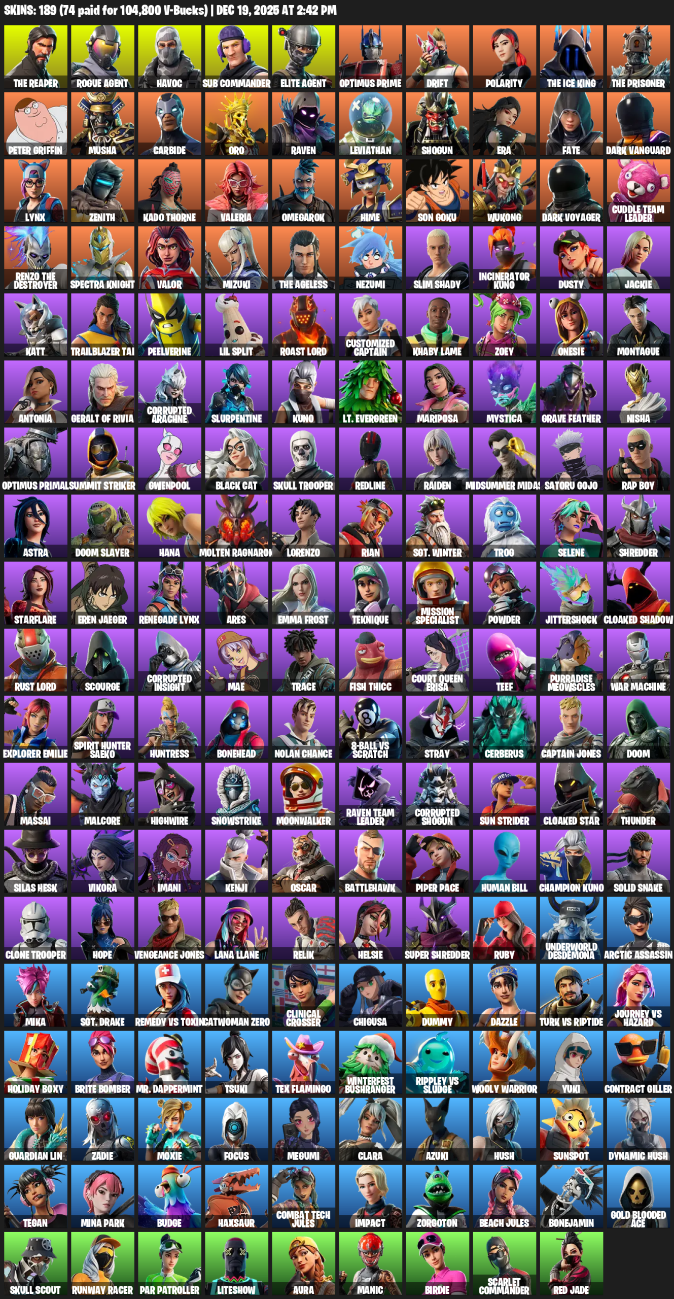 [PC/PSN/XBOX] | 189 skins | 800 V-bucks | Take The L | The Reaper | Elite Agent | Rogue Agent | Havoc | Sub Commander | Optimus Prime | #SUL8324