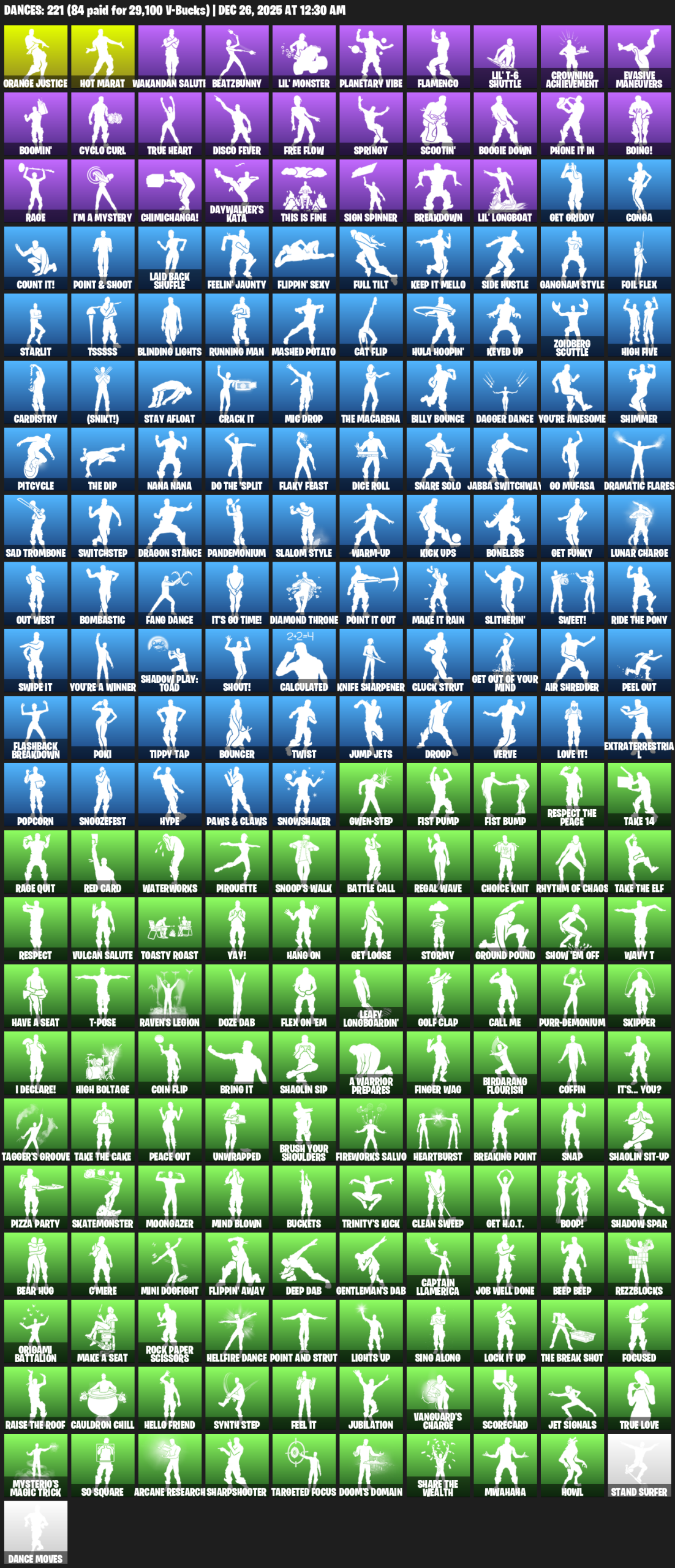 Hot Marat, Wakandan Salute, BeatzBunny, Lil’ Monster, Planetary Vibe, Flamenco, Crowning Achievement, Evasive Maneuvers, Boomin’, Cyclo Curl, True Heart, Disco Fever, Free Flow, Springy, Scootin’, Boogie Down, Phone It In, Boing!