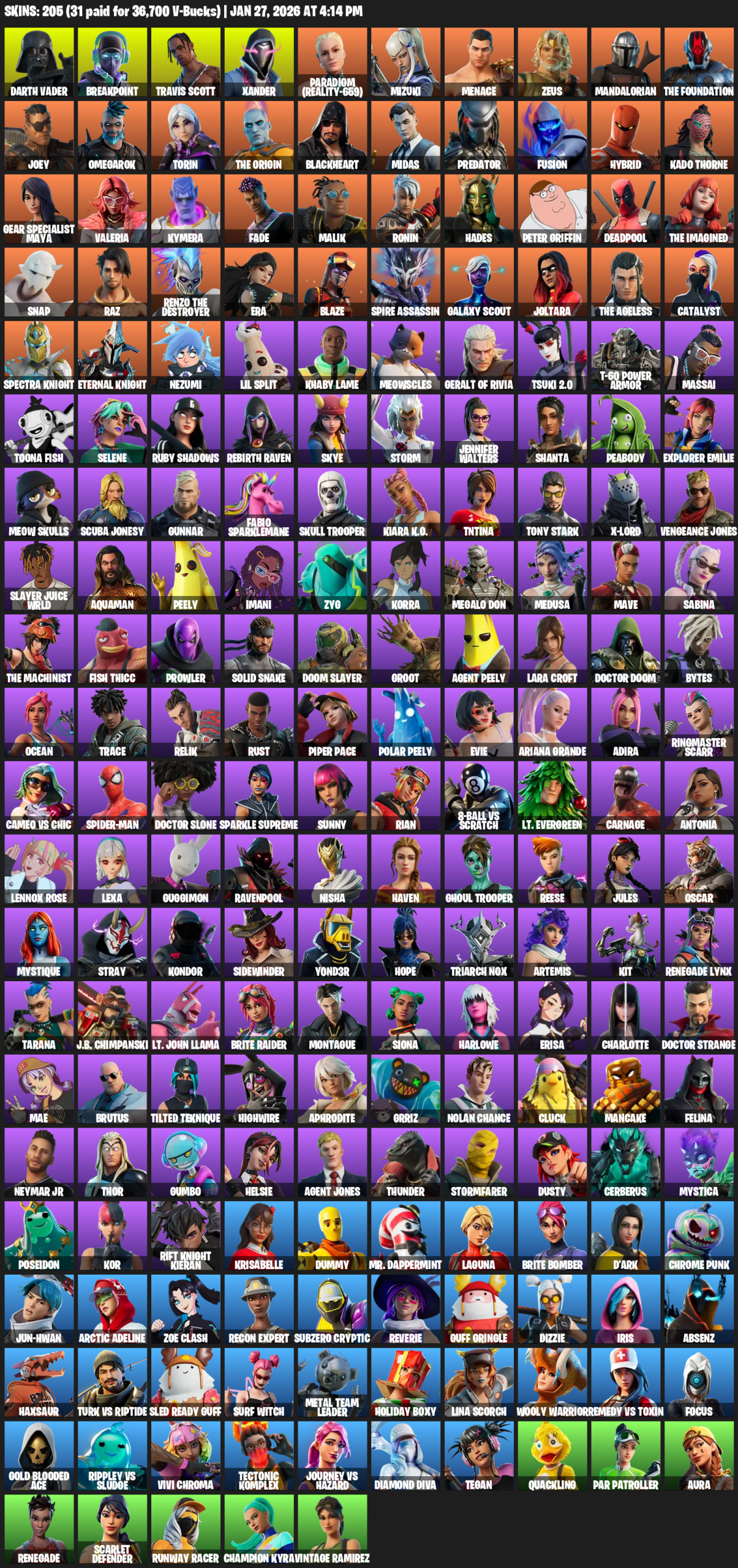 [PC/PSN/XBOX] | 205 skins | Travis Scott | Lara Croft | Darth Vader | Breakpoint | Xander | Paradigm (Reality-659) | Mizuki | Menace | Zeus | #PRT4181
