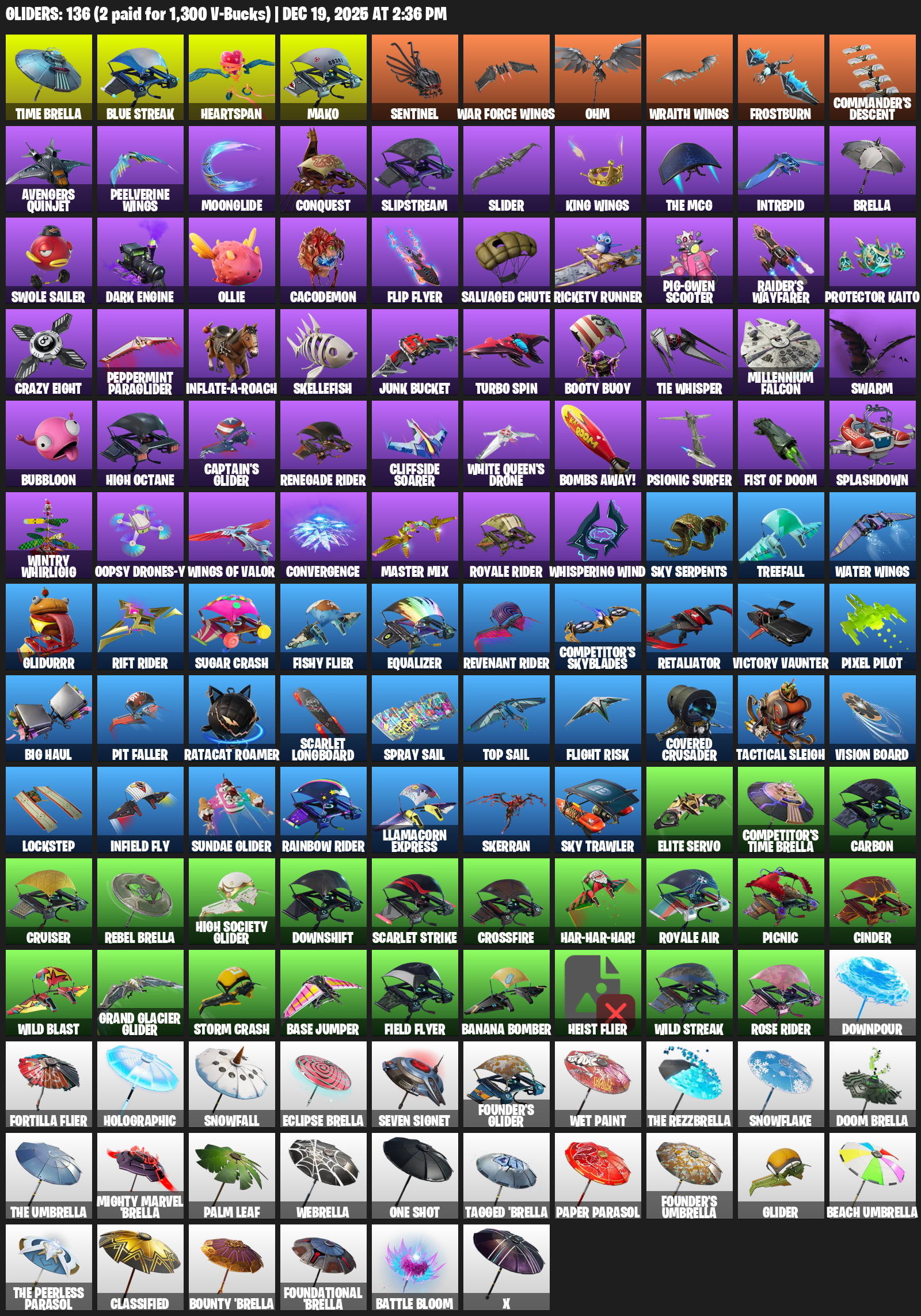 Mako, Time Brella, Heartspan, War Force Wings, Ohm, Frostburn, Commander’s Descent, Avengers Quinjet, Moonglide, Conquest, Slipstream, Slider, Intrepid