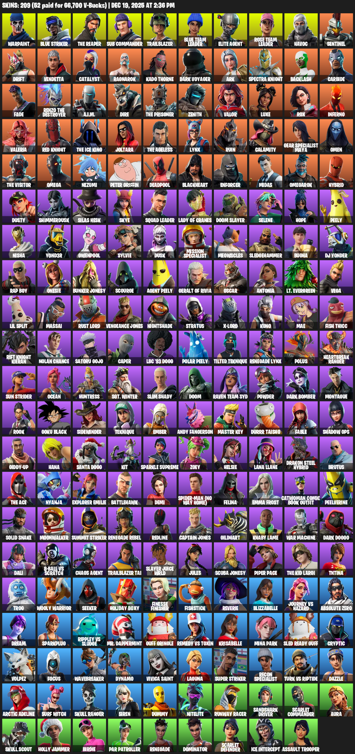 The Reaper, Elite Agent, Gear Specialist Maya, Omega, Warpaint, Blue Striker, Sub Commander, Trailblazer, Rose Team Leader, Havoc, Sentinel, Drift, Vendetta, Catalyst, Ragnarok, Kado Thorne, Dark Voyager, Ark, Spectra Knight