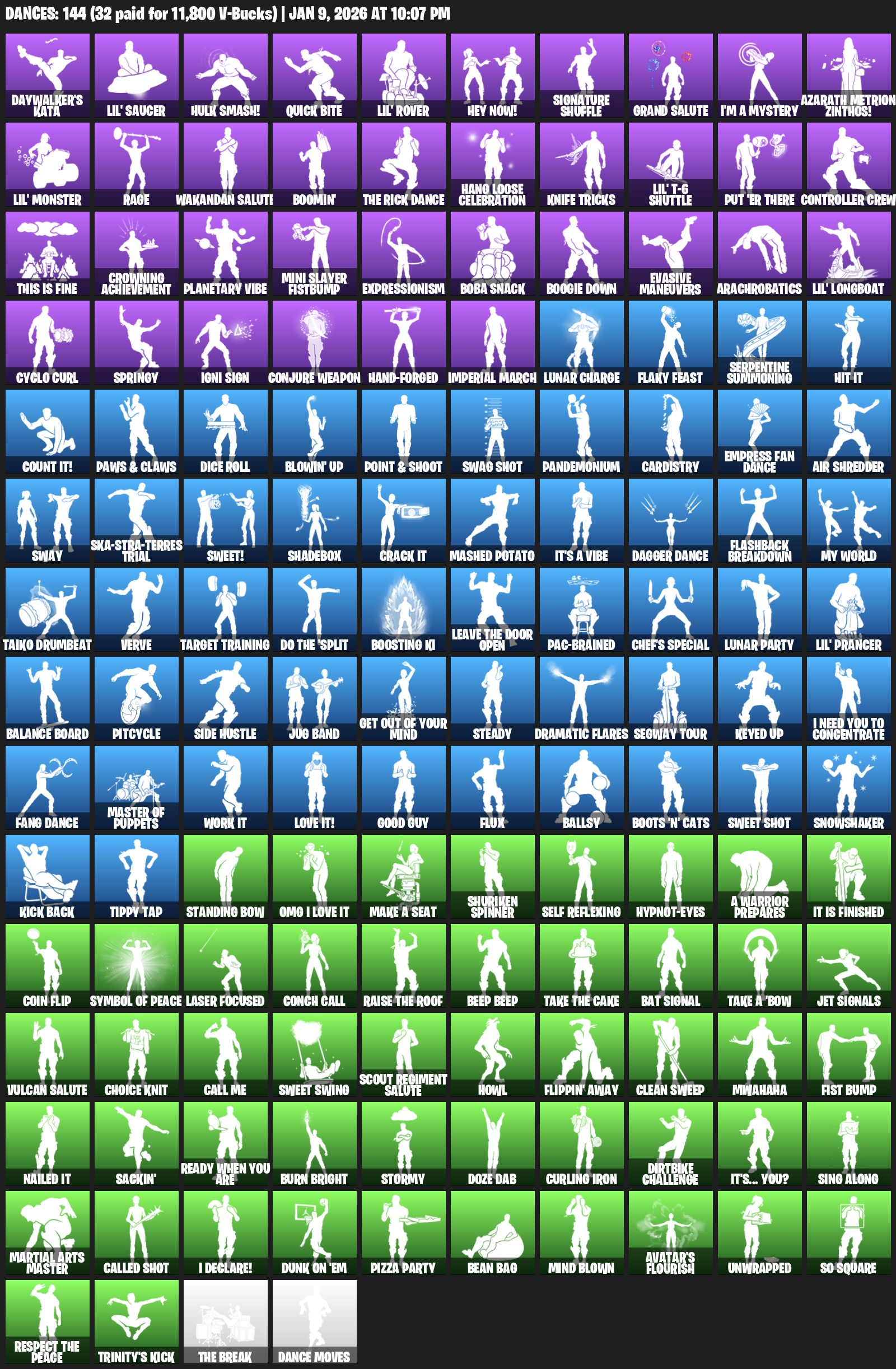 Daywalker’s Kata, Lil’ Saucer, HULK SMASH!, Quick Bite, Hey Now!, Signature Shuffle, Grand Salute, I’m a Mystery, Azarath Metrion Zinthos!, Rage, Boomin’, Hang Loose Celebration, Knife Tricks, Put ‘er There, Controller Crew