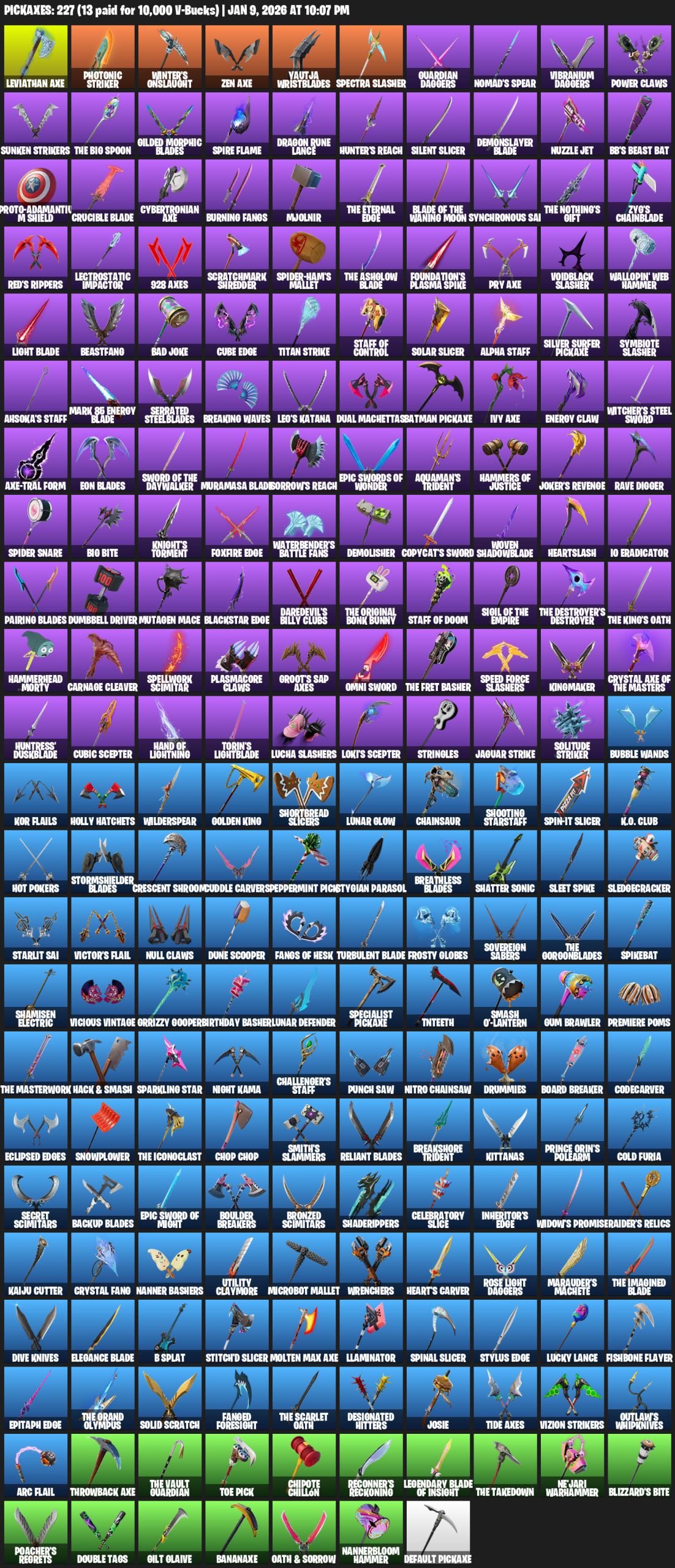 Leviathan Axe, Photonic Striker, Winter’s Onslaught, Yautja Wristblades, Guardian Daggers, Nomad’s Spear, Power Claws, Sunken Strikers, Gilded Morphic Blades, Spire Flame, Dragon Rune Lance, Hunter’s Reach, Silent Slicer, Demonslayer Blade, Nuzzle Jet, BB’s Beast Bat