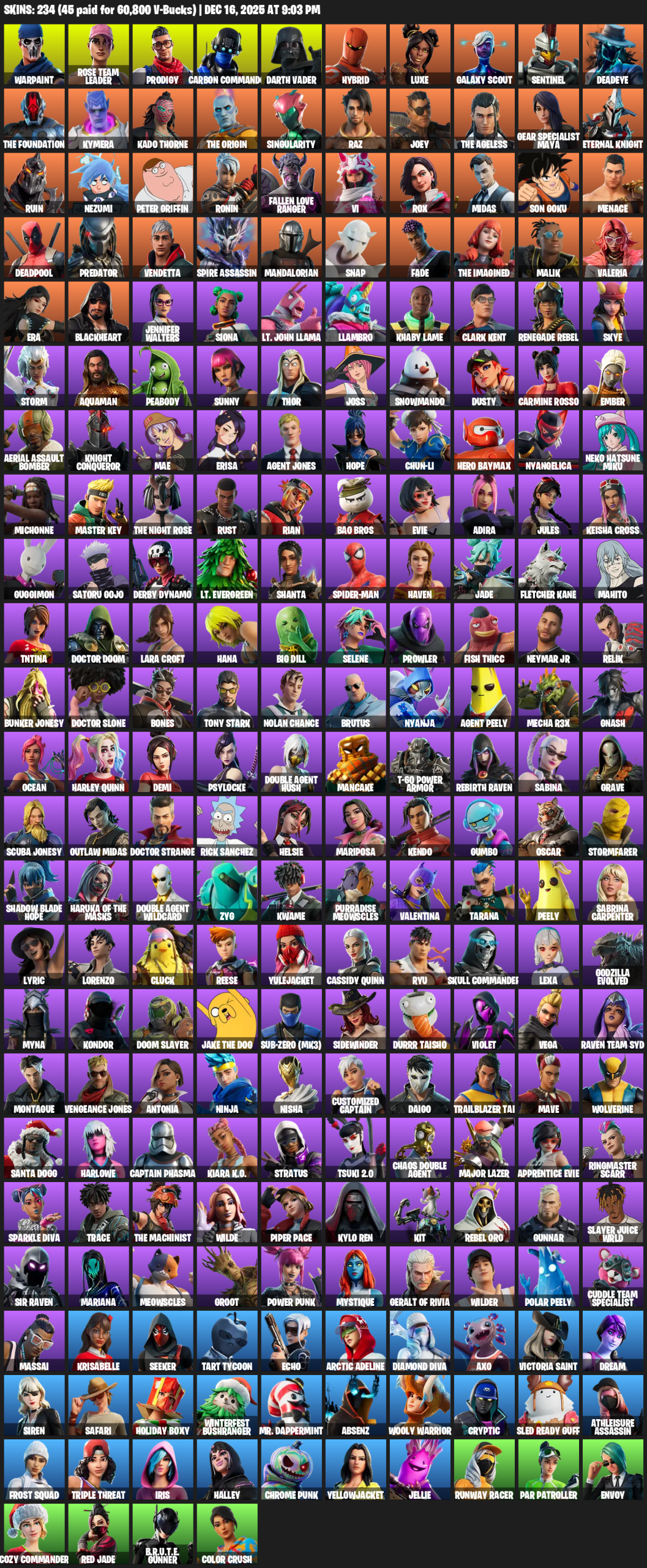 [PC/PSN/XBOX] | 234 skins | OG STW | Lara Croft | Warpaint | Rose Team Leader | Prodigy | Carbon Commando | Darth Vader | Hybrid | Luxe | #XKU4340