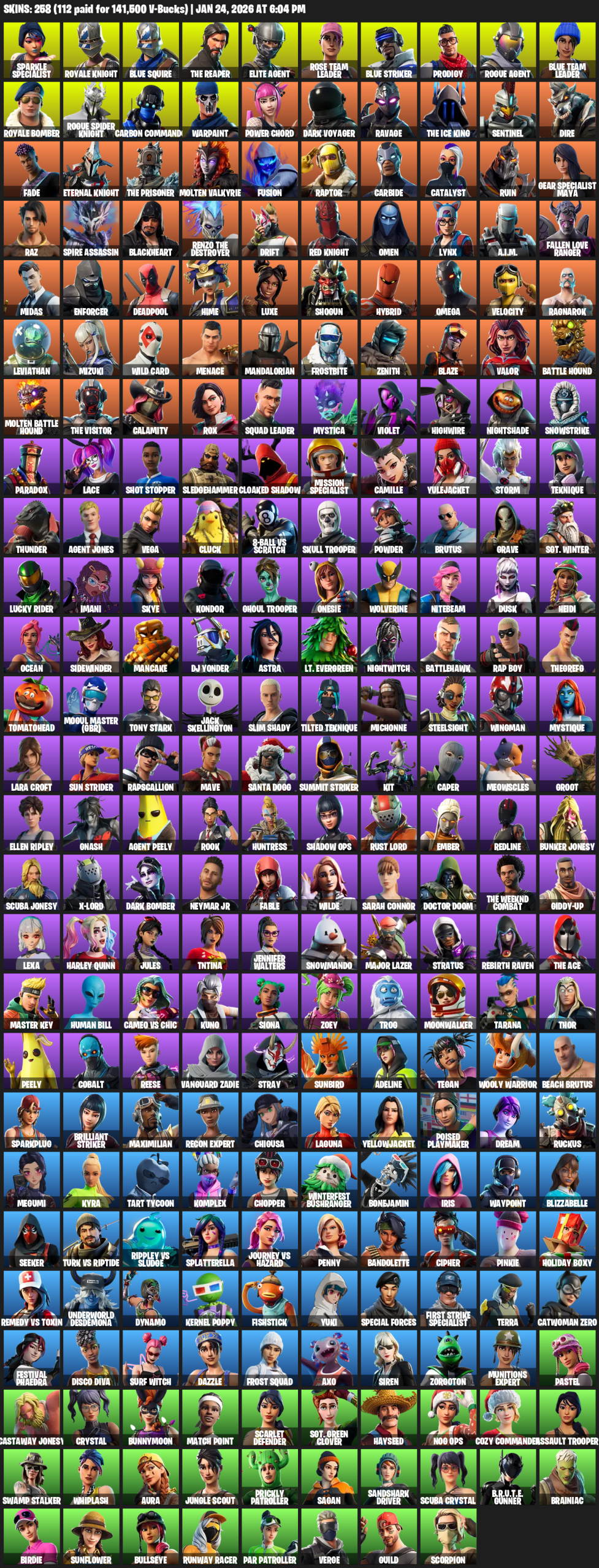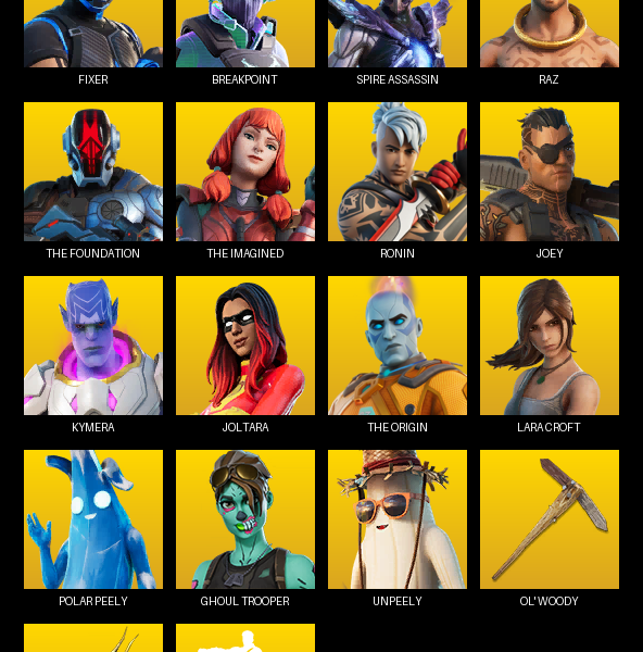 Sparkle Specialist, Royale Knight, Blue Squire, The Reaper, Elite Agent, Omega, Lara Croft, Rose Team Leader, Prodigy, Carbon Commando, Warpaint, Power Chord, Dark Voyager, Ravage