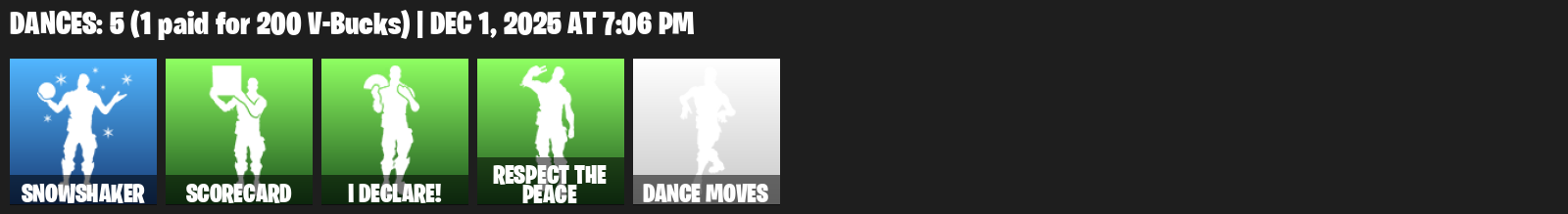 Snowshaker, Scorecard, I Declare!, Respect The Peace, Dance Moves