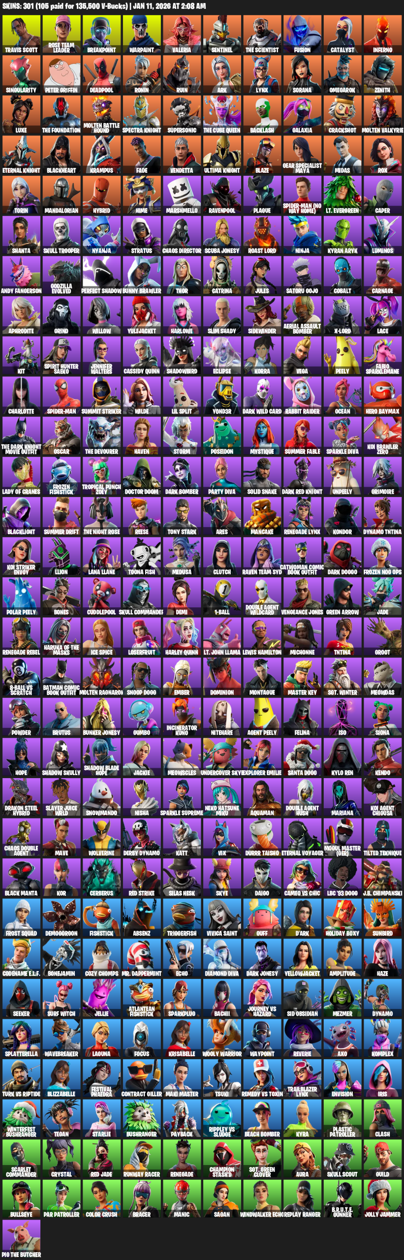 Travis Scott, Gear Specialist Maya, Rose Team Leader, Breakpoint, Warpaint, Valeria, Sentinel, The Scientist, Fusion, Catalyst, Inferno, Singularity, Peter Griffin, Deadpool, Ronin, Ruin, Ark, Lynx, Sorana, Omegarok