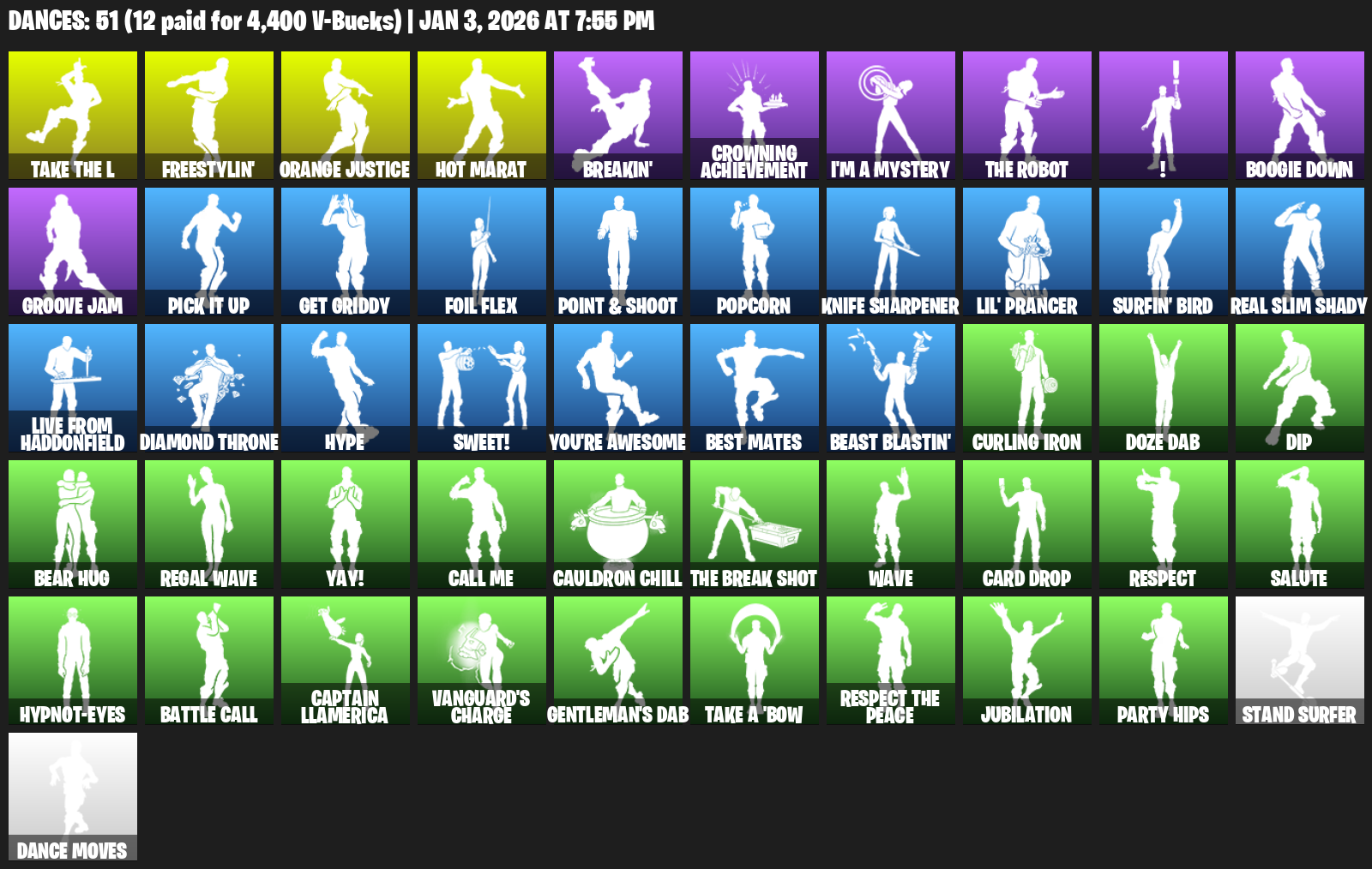 Hot Marat, Freestylin’, Orange Justice, Breakin’, Crowning Achievement, I’m a Mystery, !, Boogie Down, Groove Jam, Get Griddy, Point & Shoot, Popcorn, Lil’ Prancer, Surfin’ Bird, Real Slim Shady