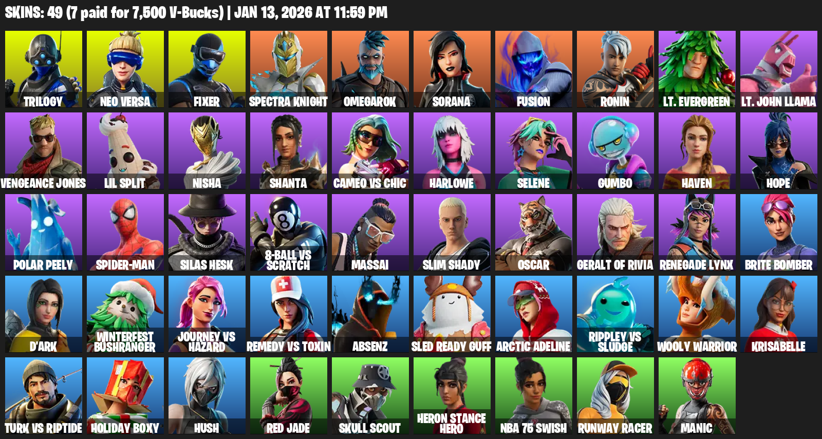 Trilogy, Neo Versa, Fixer, Spectra Knight, Omegarok, Sorana, Fusion, Ronin, Lt. Evergreen, Vengeance Jones, Lil Split, Nisha, Shanta, Cameo vs Chic, Harlowe, Selene, Gumbo, Haven, Hope