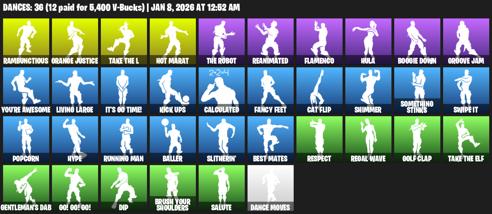 Hot Marat, Rambunctious, Orange Justice, Reanimated, Flamenco, Hula, Boogie Down, Groove Jam, You’re Awesome, Living Large, It’s Go Time!, Kick Ups, Calculated, Fancy Feet, Cat Flip, Shimmer, Something Stinks, Swipe It