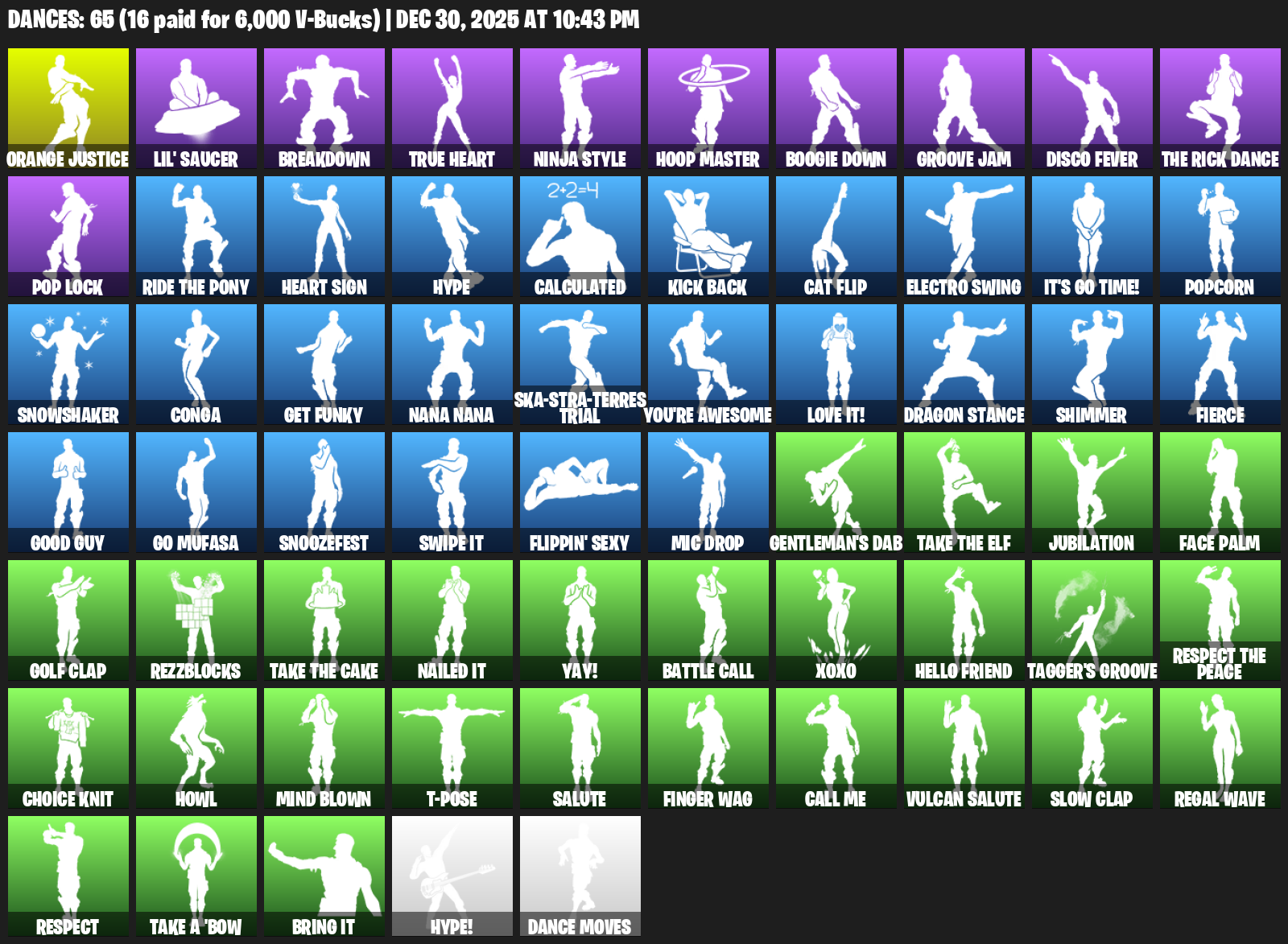Orange Justice, Lil’ Saucer, Breakdown, True Heart, Ninja Style, Hoop Master, Boogie Down, Groove Jam, Disco Fever, Pop Lock, Hype, Calculated, Kick Back, Cat Flip, Electro Swing, It’s Go Time!, Popcorn