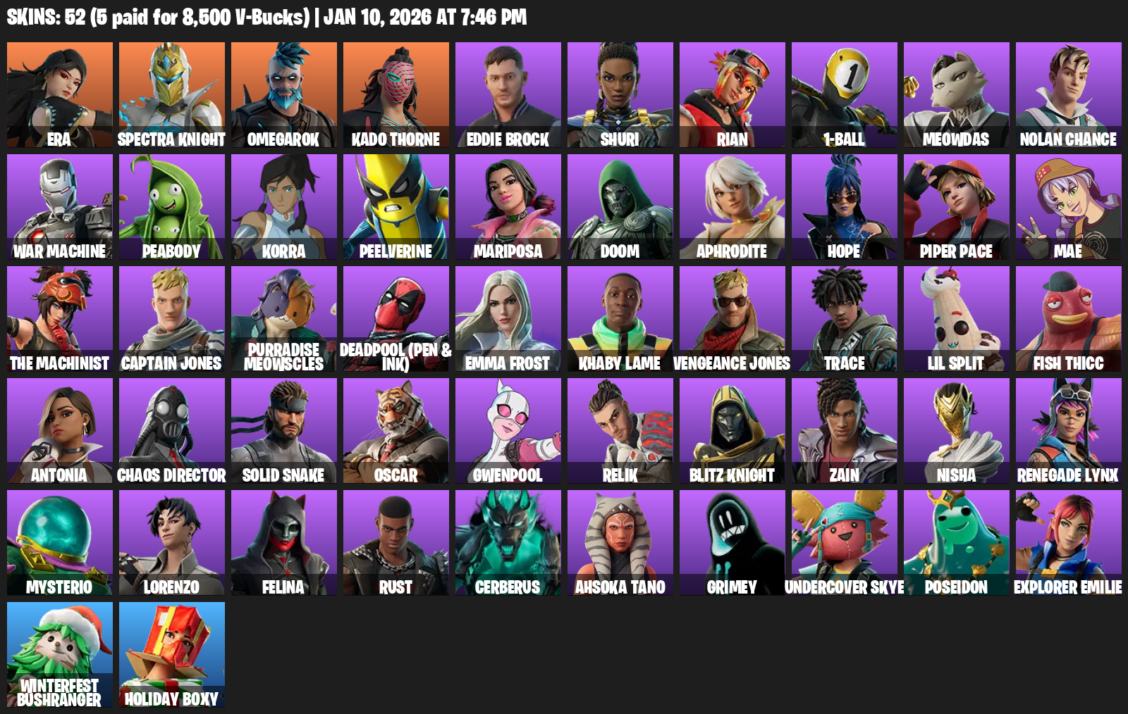 Era, Spectra Knight, Omegarok, Kado Thorne, Eddie Brock, Shuri, Rian, 1-Ball, Meowdas, Nolan Chance, War Machine, Peabody, Korra, Peelverine, Mariposa, Doom, Aphrodite, Hope, Piper Pace, Mae