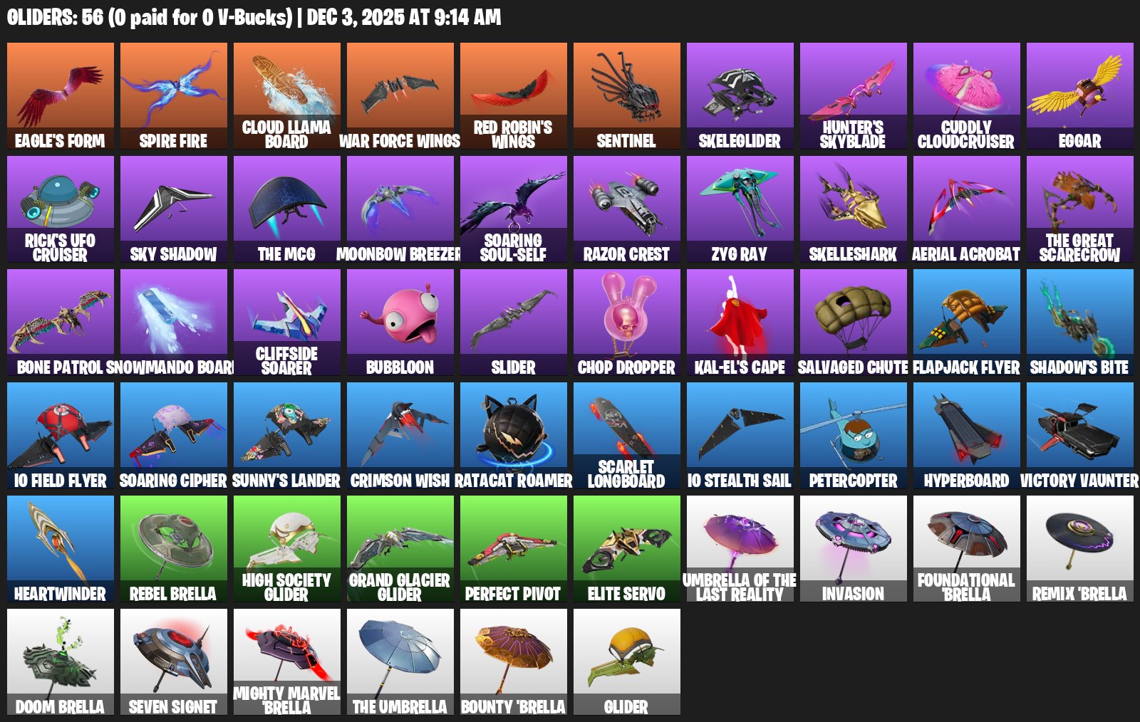 Eagle’s Form, Cloud Llama Board, War Force Wings, Sentinel, Skeleglider, Hunter’s Skyblade, Cuddly Cloudcruiser, Eggar, Rick’s UFO Cruiser, Sky Shadow, Moonbow Breezer, Soaring Soul-Self, Razor Crest, Zyg Ray, Skelleshark, Aerial Acrobat