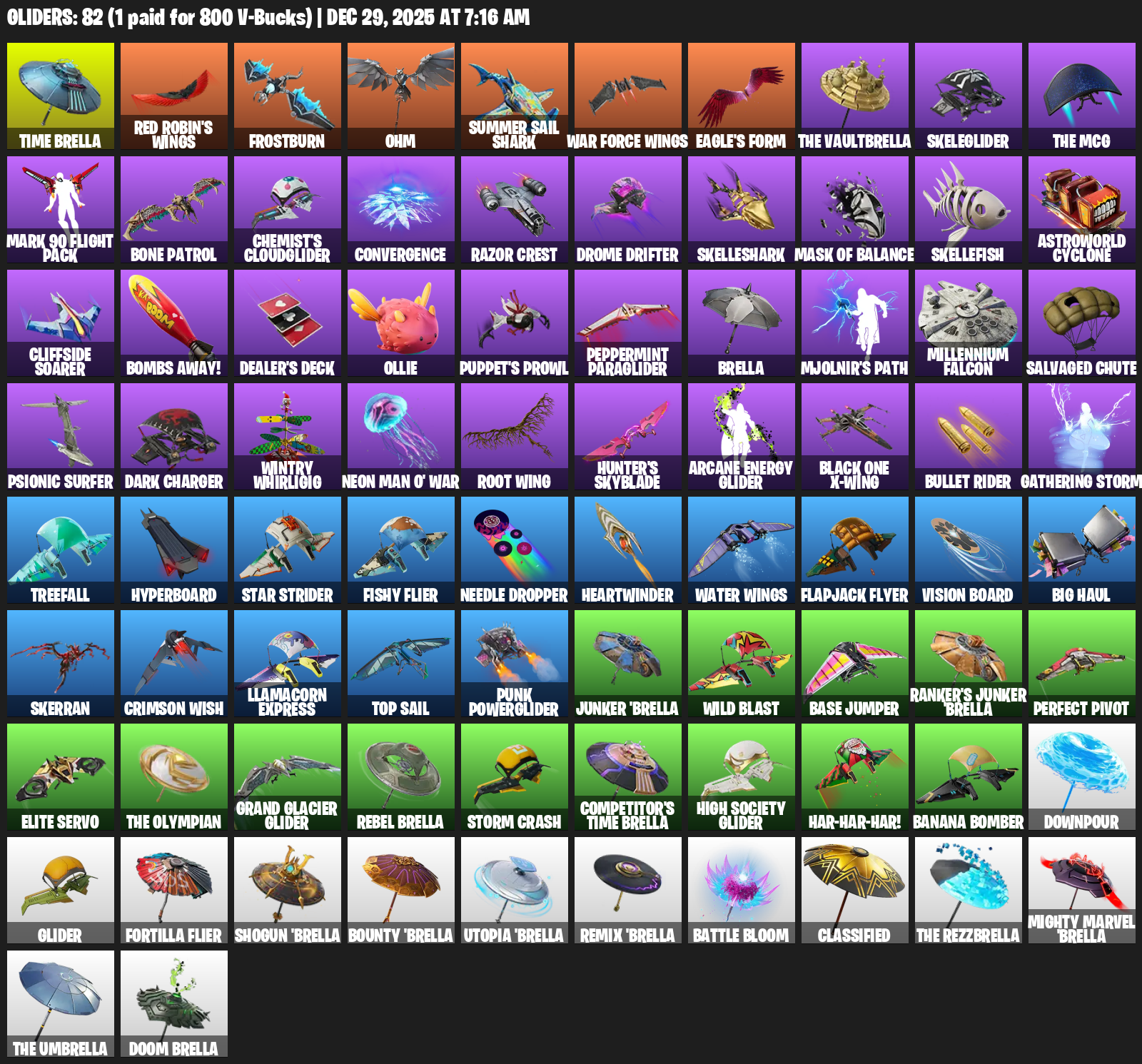 Time Brella, Red Robin’s Wings, Frostburn, Ohm, Summer Sail Shark, Eagle’s Form, Skeleglider, Bone Patrol, Chemist’s Cloudglider, Convergence, Razor Crest, Drome Drifter, Skelleshark, Skellefish, Astroworld Cyclone