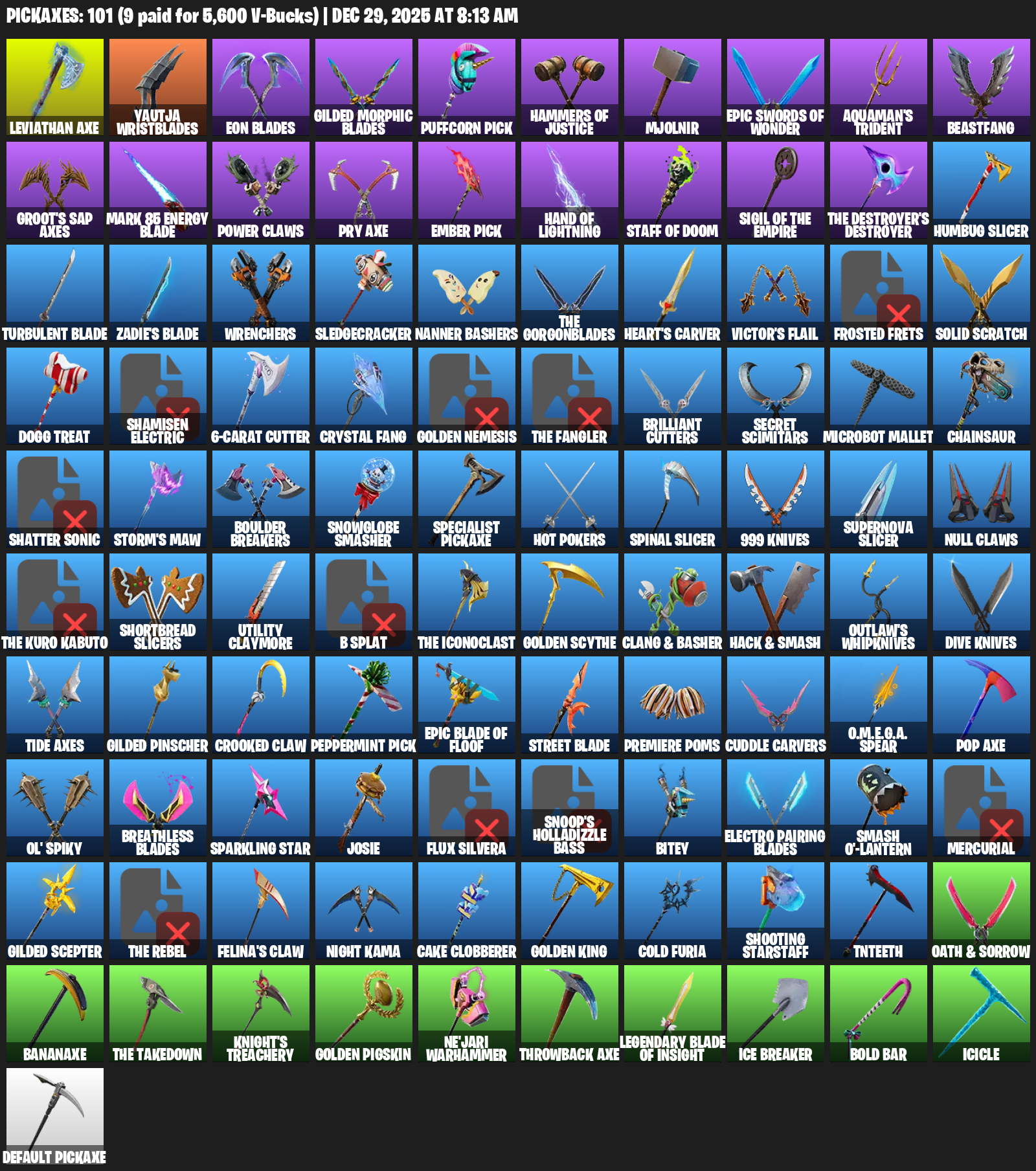 Leviathan Axe, Yautja Wristblades, Eon Blades, Puffcorn Pick, Hammers of Justice, Mjolnir, Aquaman’s Trident, Beastfang, Groot’s Sap Axes, Mark 85 Energy Blade, Power Claws, The Destroyer’s Destroyer, Humbug Slicer