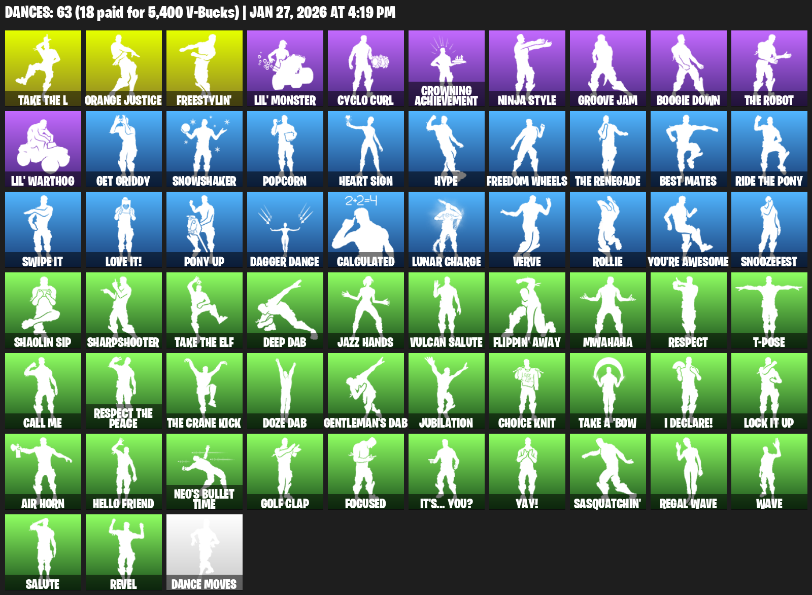 Freestylin’, Lil’ Monster, Cyclo Curl, Crowning Achievement, Ninja Style, Groove Jam, Boogie Down, Get Griddy, Snowshaker, Popcorn, Heart Sign, Hype, Freedom Wheels, Best Mates