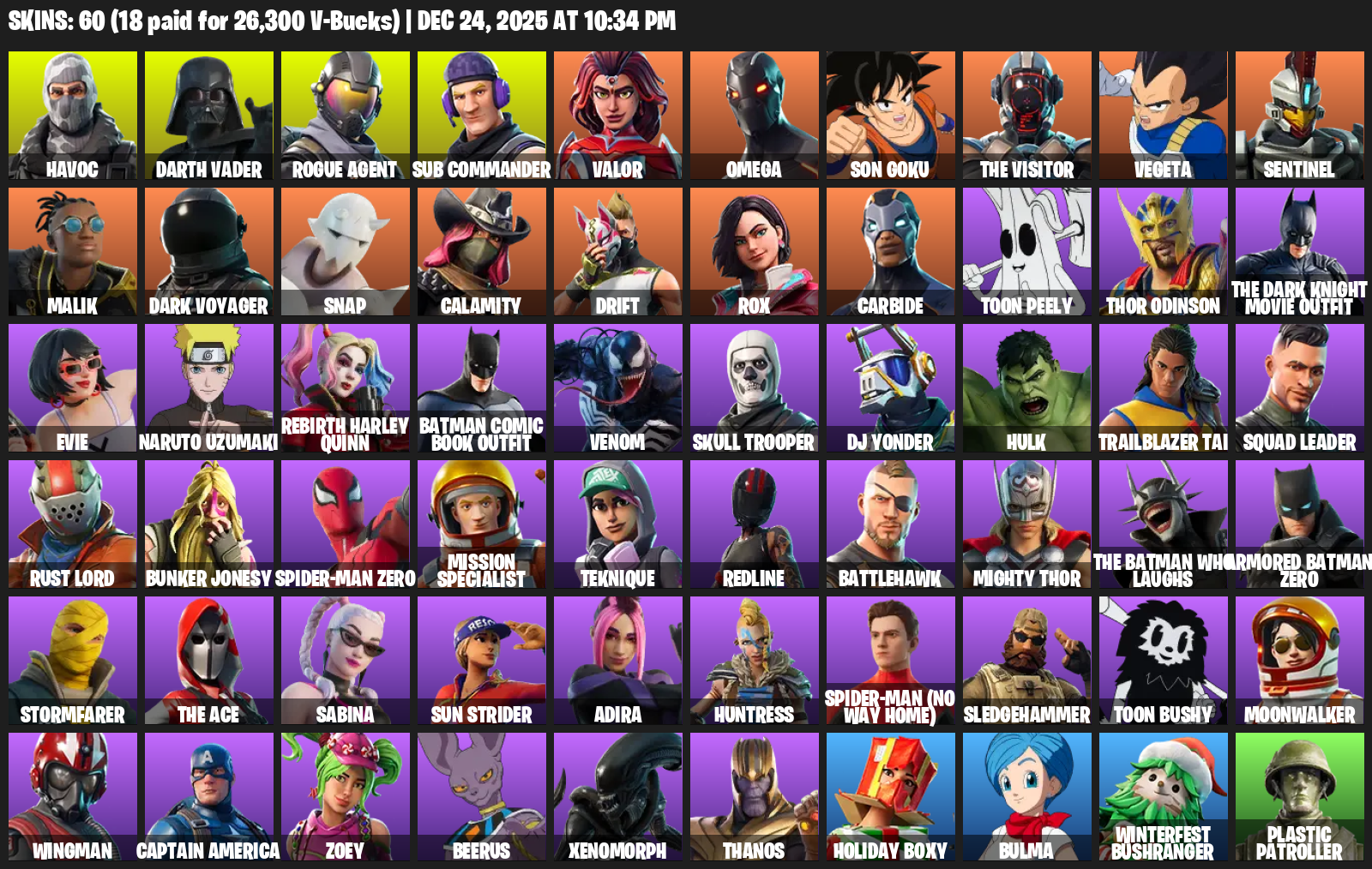 [PC/PSN/XBOX] | 60 skins | Take The L | Omega | Havoc | Darth Vader | Rogue Agent | Sub Commander | Valor | Son Goku | The Visitor | Vegeta | #KGN2300