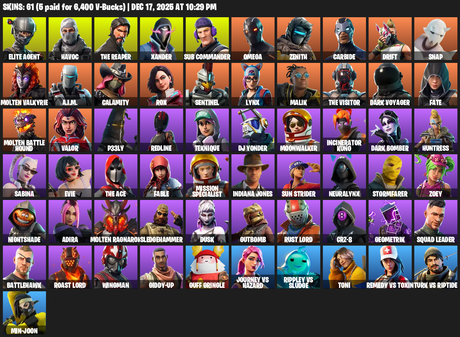 [PC/PSN/XBOX] | 61 skins | Take The L | The Reaper | Elite Agent | Omega | Havoc | Xander | Sub Commander | Zenith | Carbide | Drift | Snap | #PFR8029