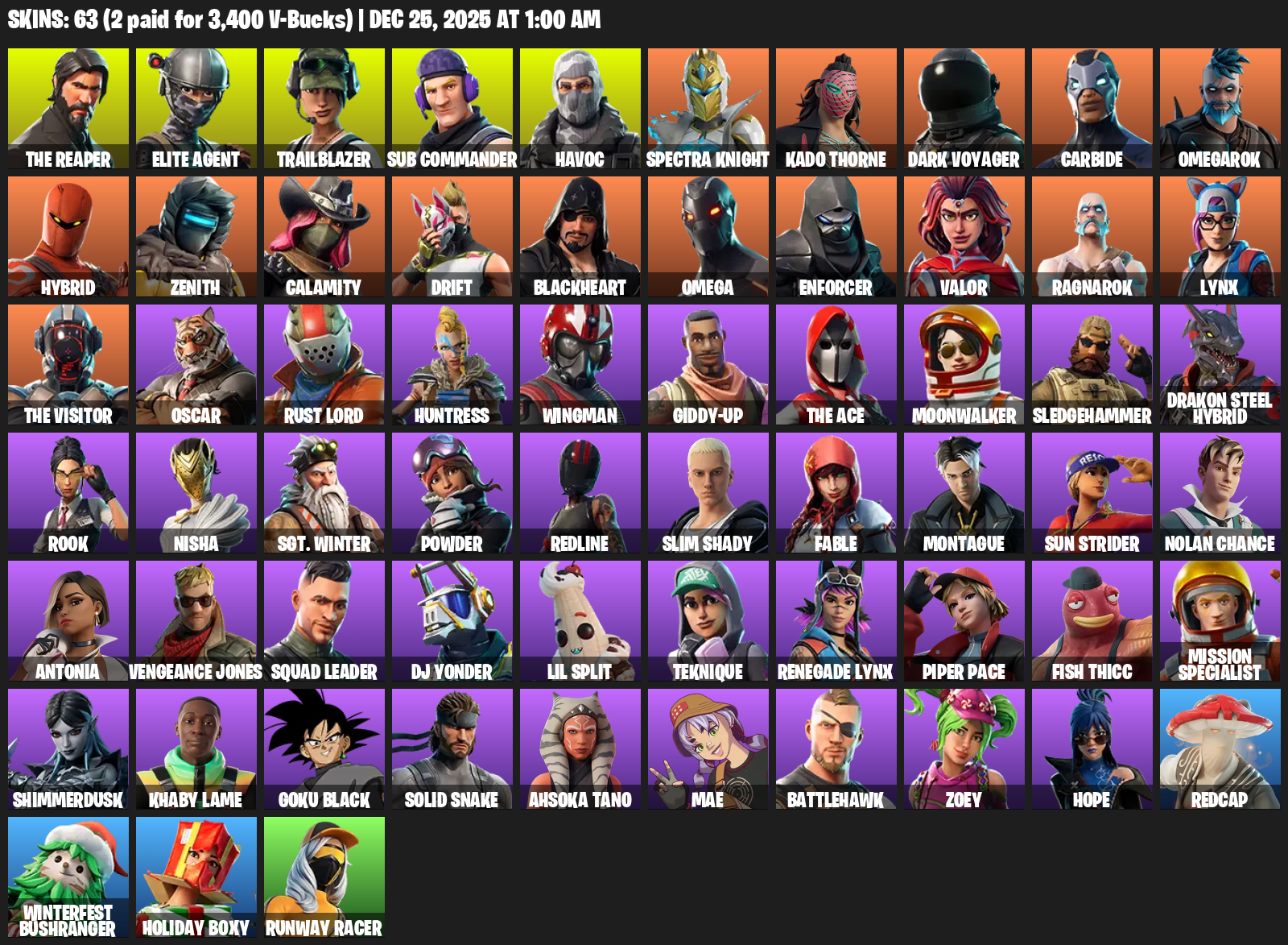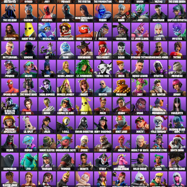 The Reaper, Elite Agent, Omega, Trailblazer, Sub Commander, Havoc, Spectra Knight, Kado Thorne, Dark Voyager, Carbide, Omegarok, Hybrid, Zenith, Calamity, Drift, Blackheart, Enforcer, Valor, Ragnarok, Lynx