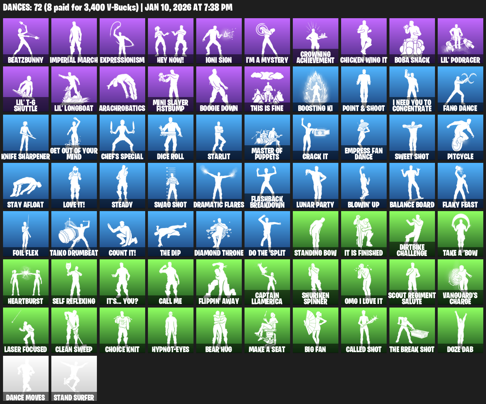 BeatzBunny, Imperial March, Expressionism, Hey Now!, Igni Sign, I’m a Mystery, Crowning Achievement, Chicken Wing It, Boba Snack, Lil’ Podracer, Arachrobatics, Mini Slayer Fistbump, Boogie Down, This is Fine, Boosting Ki, Point & Shoot, I Need You to Concentrate, Fang Dance