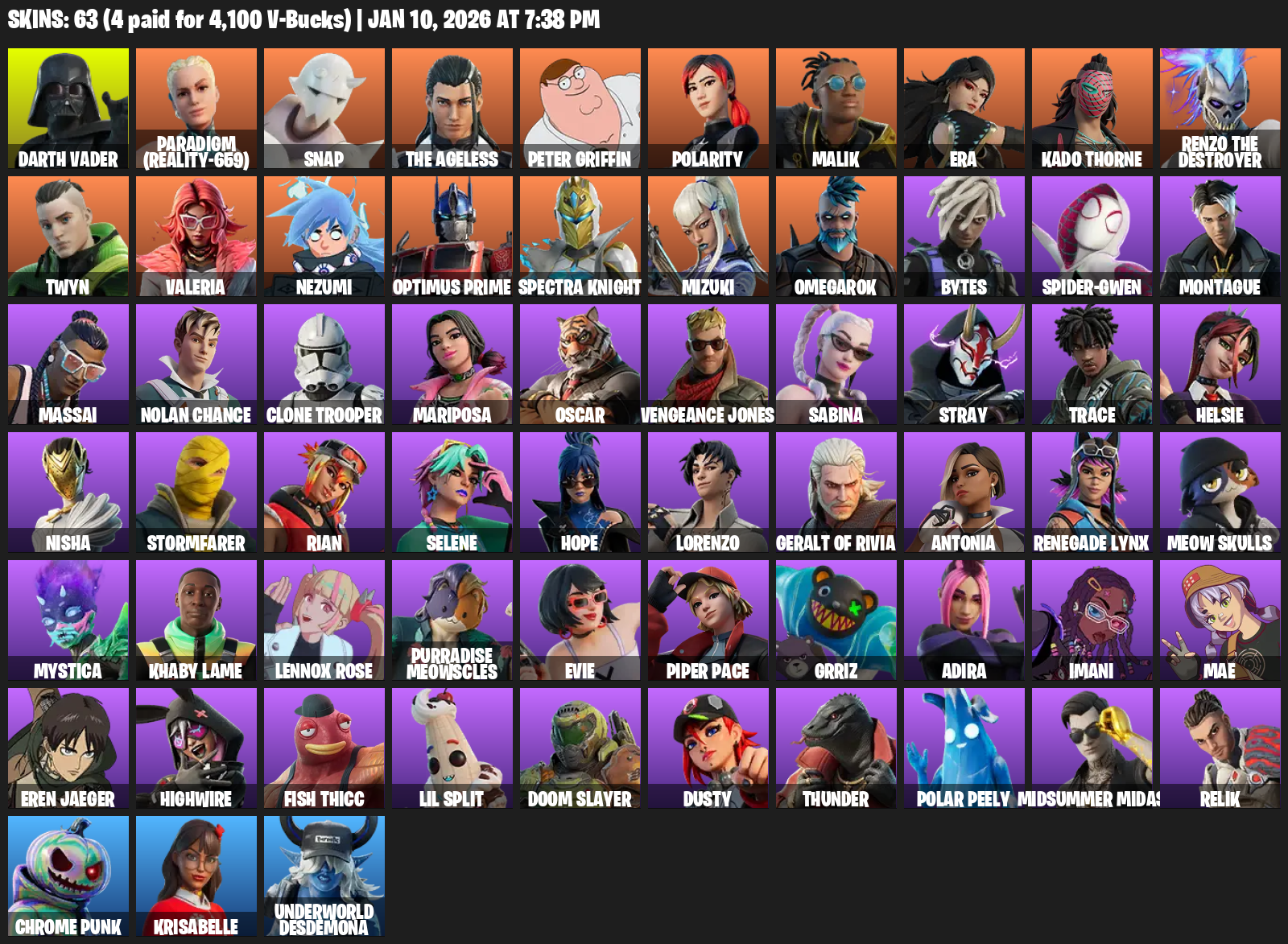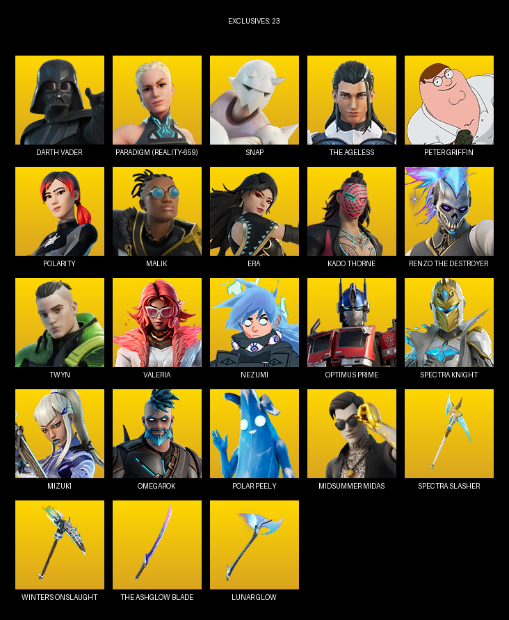 Darth Vader, Paradigm (Reality-659), Snap, The Ageless, Peter Griffin, Polarity, Malik, Era, Kado Thorne, Twyn, Valeria, Nezumi, Optimus Prime, Spectra Knight, Mizuki, Omegarok, Bytes, Spider-Gwen, Montague