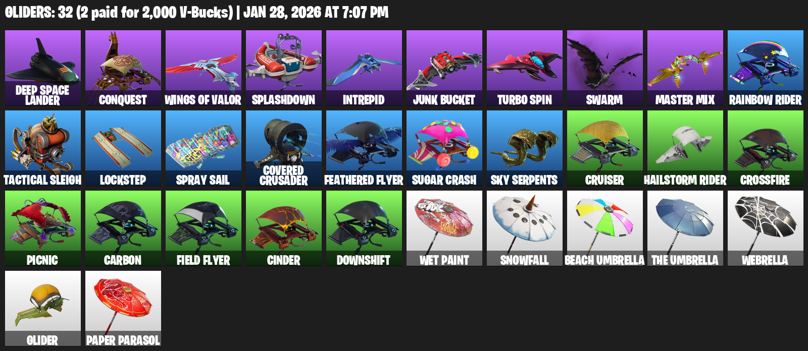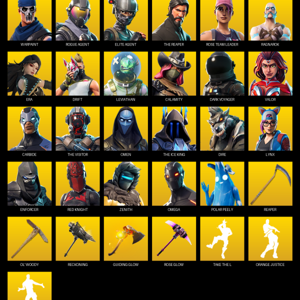 Elite Agent, The Reaper, Omega, Blue Striker, Trailblazer, Love Ranger, Carbide, Ragnarok, Raven, Calamity, Wukong, Rox, Sentinel, Drift, Fate, Oblivion, Blackheart, Dark Voyager, Omen