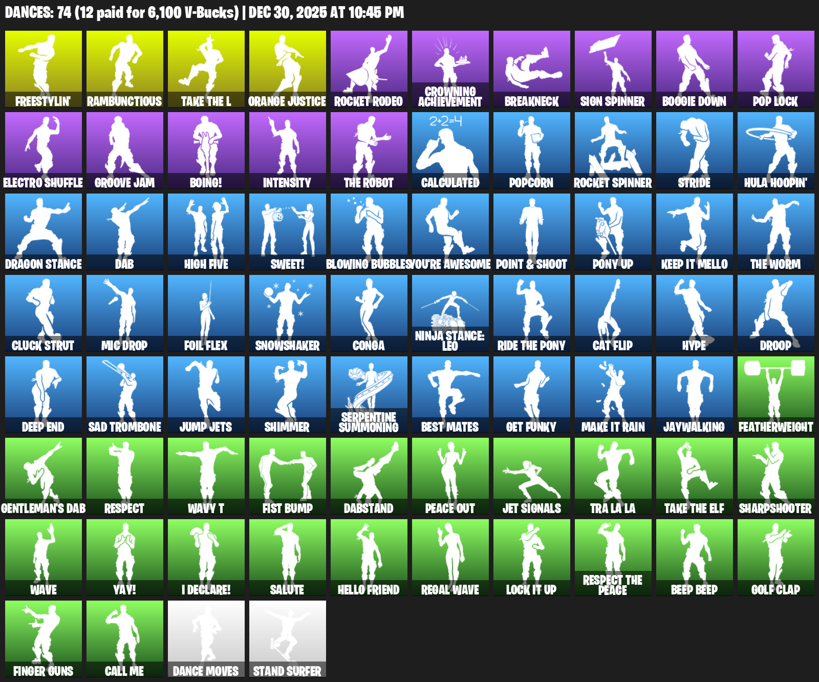 Freestylin’, Rambunctious, Orange Justice, Rocket Rodeo, Crowning Achievement, Breakneck, Sign Spinner, Boogie Down, Pop Lock, Electro Shuffle, Groove Jam, Boing!, Intensity, Calculated, Popcorn, Stride, Hula Hoopin’