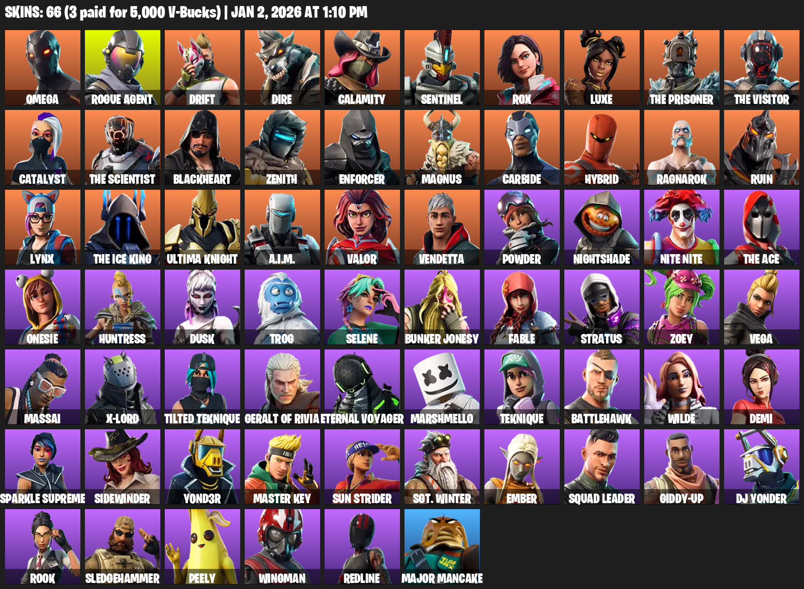 Omega, Rogue Agent, Drift, Dire, Calamity, Sentinel, Rox, Luxe, The Prisoner, Catalyst, Blackheart, Zenith, Enforcer, Magnus, Carbide, Hybrid, Ragnarok, Ruin
