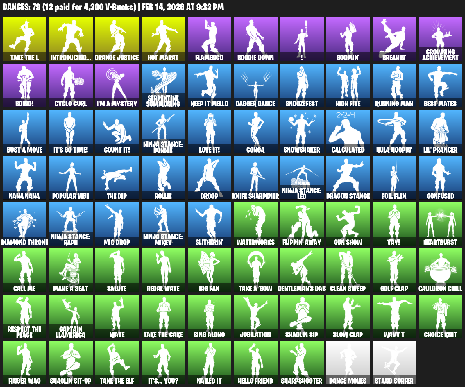Introducing…, Hot Marat, Orange Justice, Flamenco, Boogie Down, !, Boomin’, Breakin’, Crowning Achievement, Boing!, Cyclo Curl, I’m a Mystery, Serpentine Summoning, Keep It Mello, Dagger Dance, Snoozefest, High Five, Running Man, Best Mates