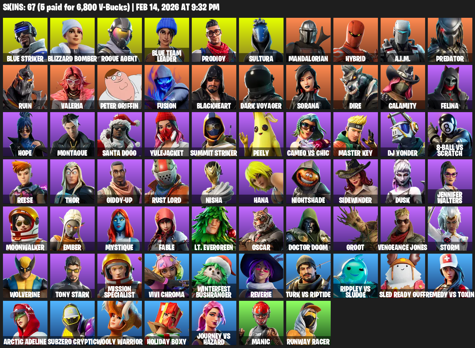 [PC/PSN/XBOX] | 67 skins | Take The L | Blue Striker | Blizzard Bomber | Rogue Agent | Blue Team Leader | Prodigy | Sultura | Mandalorian | #WTU4648