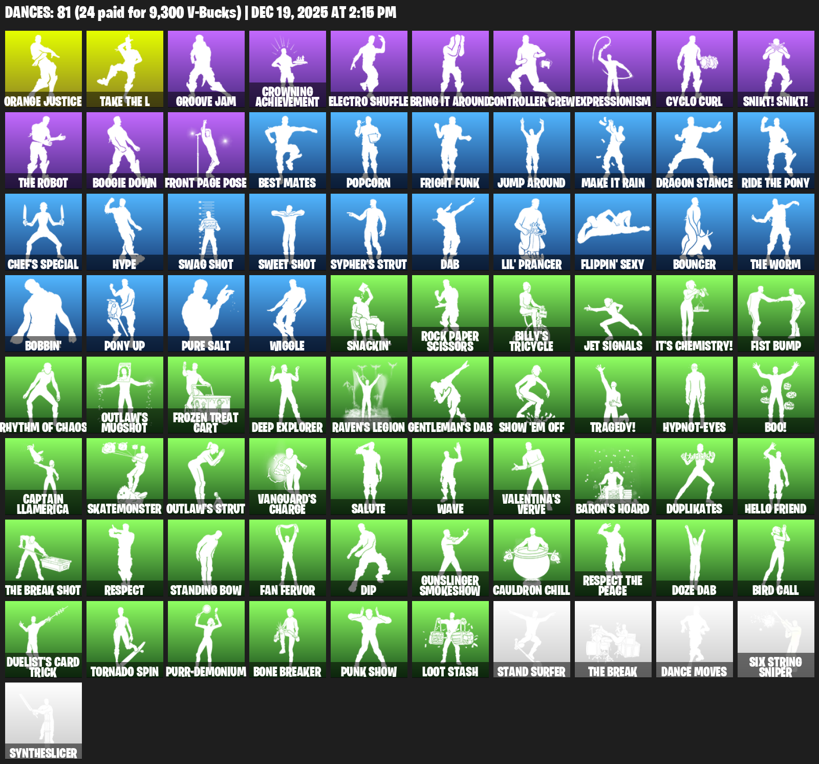 Orange Justice, Groove Jam, Crowning Achievement, Bring it around, Controller Crew, Expressionism, Cyclo Curl, Snikt! Snikt!, Boogie Down, Front Page Pose, Best Mates, Popcorn, Fright Funk, Dragon Stance