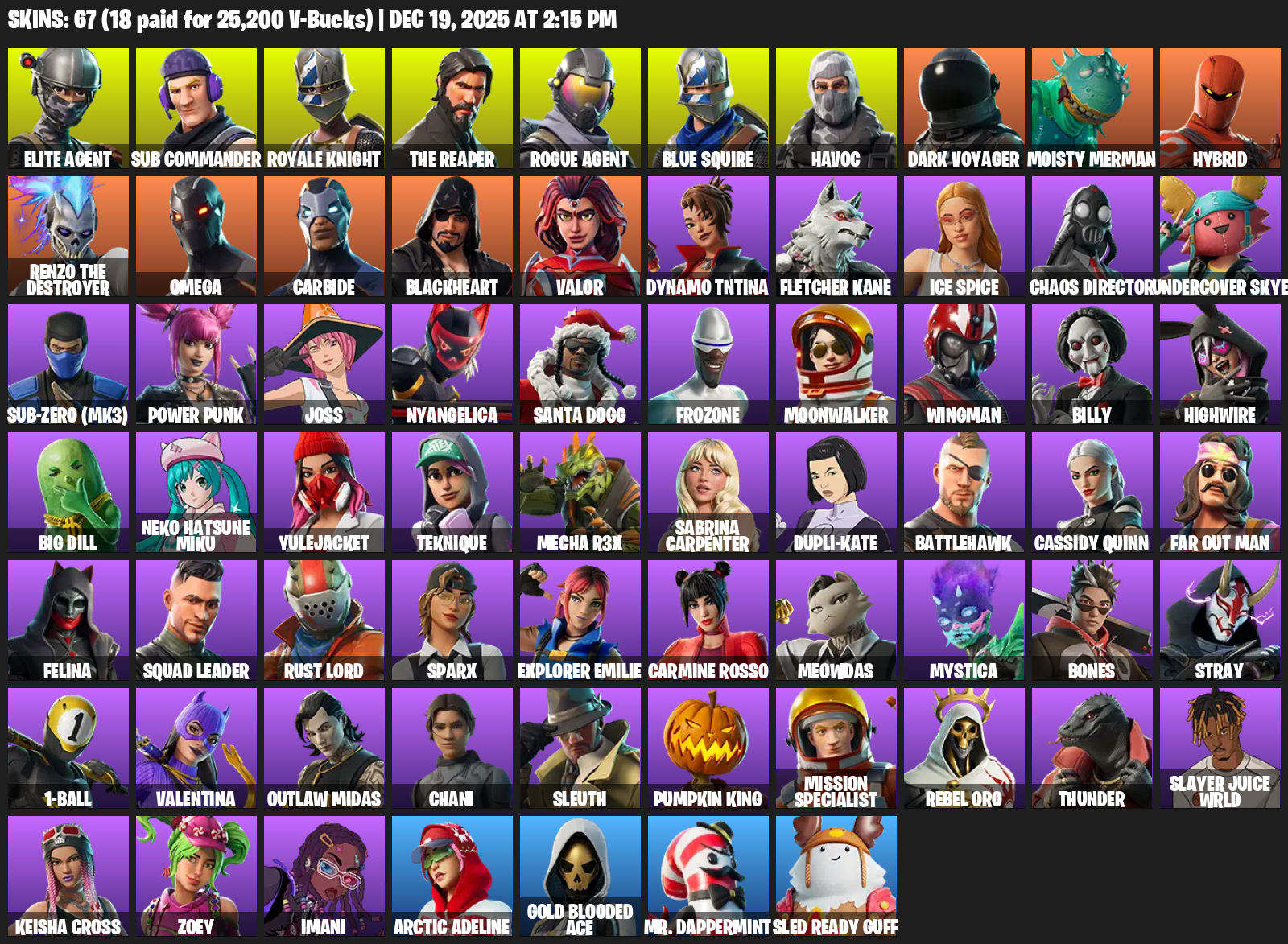 Elite Agent, Royale Knight, The Reaper, Blue Squire, Omega, Sub Commander, Havoc, Dark Voyager, Moisty Merman, Hybrid, Carbide, Blackheart, Valor, Dynamo TNTina, Fletcher Kane, Ice Spice, Chaos Director, Undercover Skye