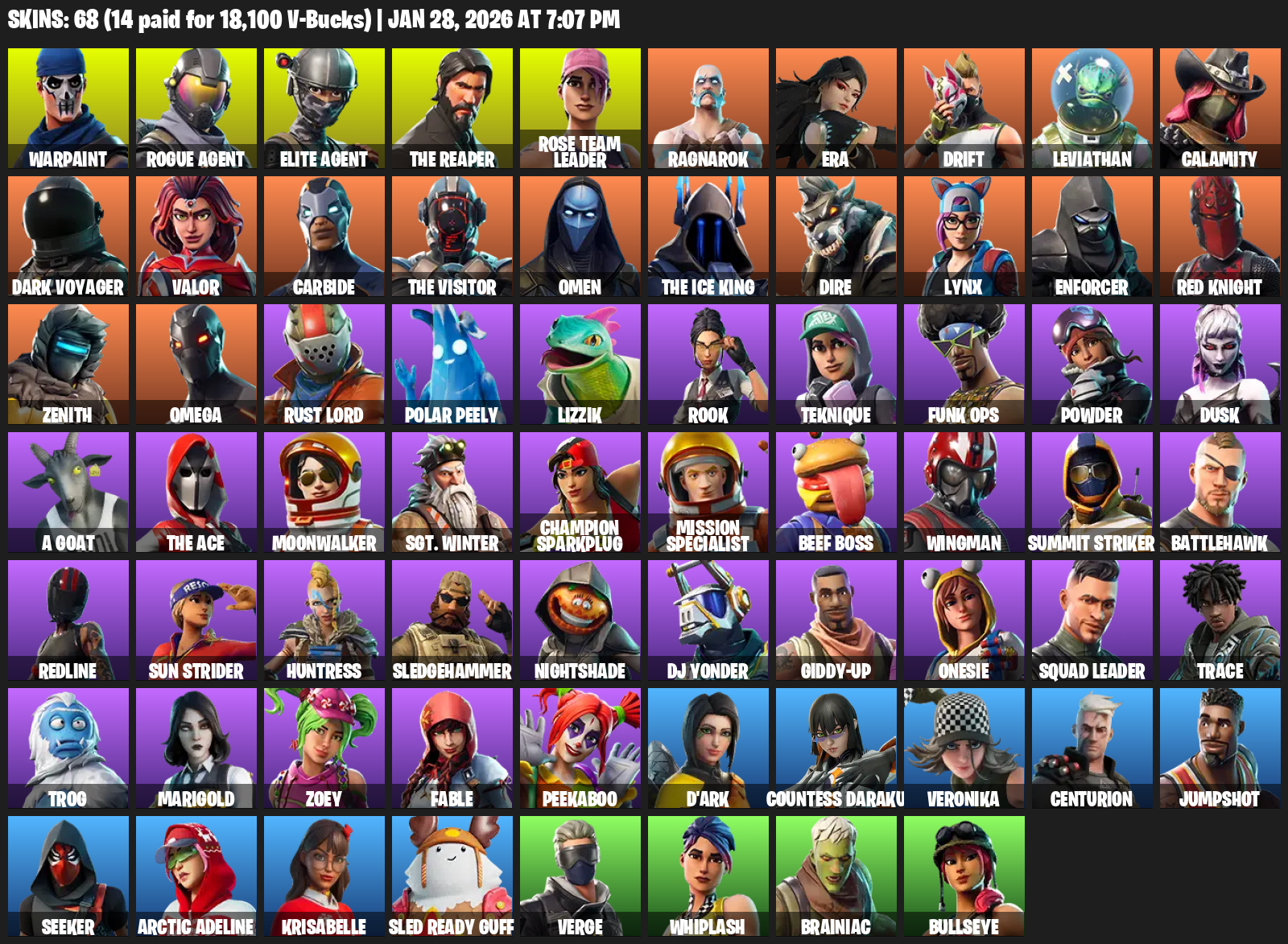 [PC/PSN/XBOX] | 68 skins | Take The L | OG STW | The Reaper | Elite Agent | Omega | Warpaint | Rogue Agent | Rose Team Leader | Ragnarok | #WYQ7760
