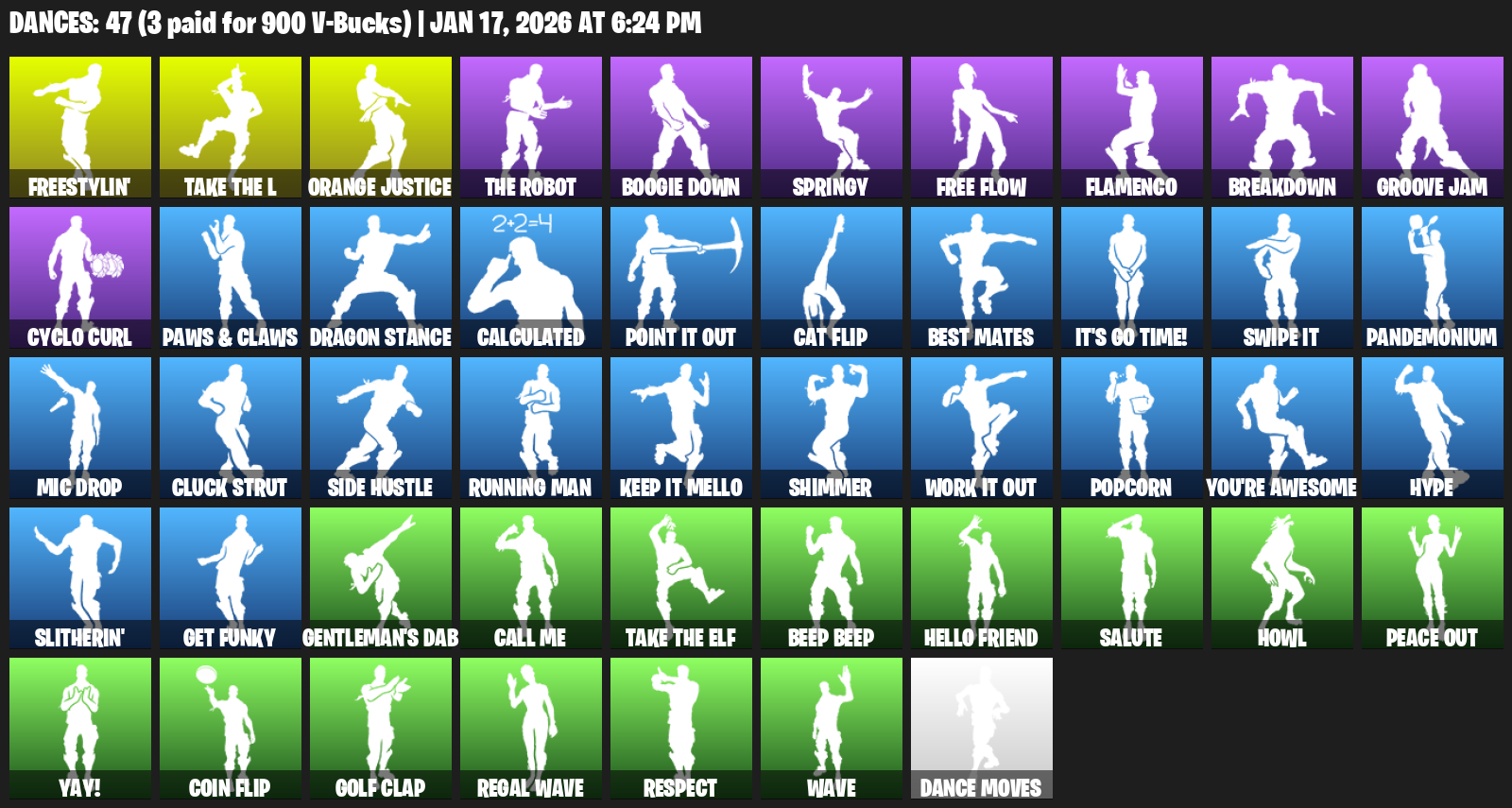 Freestylin’, Orange Justice, Boogie Down, Springy, Free Flow, Flamenco, Breakdown, Groove Jam, Cyclo Curl, Paws & Claws, Dragon Stance, Calculated, Cat Flip, Best Mates, It’s Go Time!, Swipe It, Pandemonium
