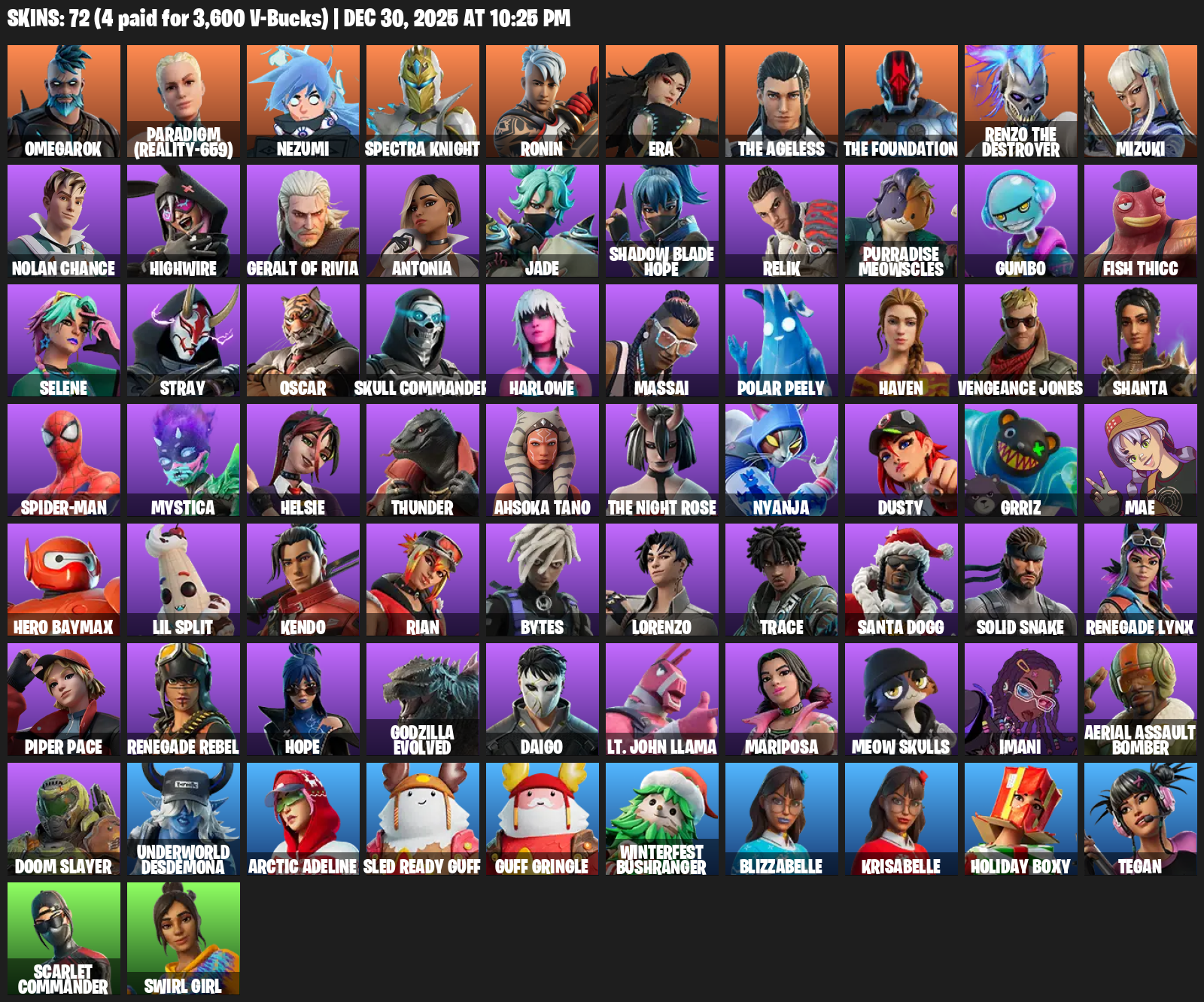 [PC/PSN/XBOX] | 72 skins | 850 V-bucks | Omegarok | Paradigm (Reality-659) | Nezumi | Spectra Knight | Ronin | Era | The Ageless | #VDV1611
