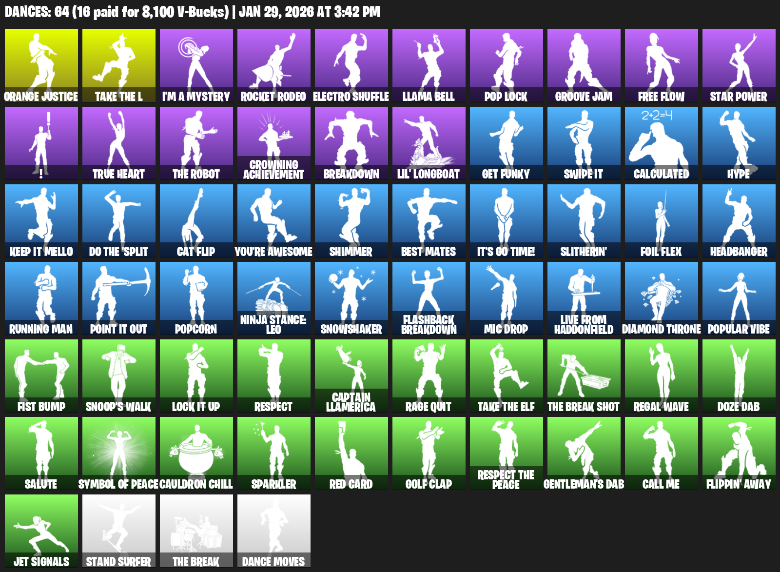 Orange Justice, I’m a Mystery, Rocket Rodeo, Electro Shuffle, Llama Bell, Pop Lock, Groove Jam, Free Flow, Star Power, !, True Heart, Crowning Achievement, Breakdown, Lil’ Longboat, Get Funky, Swipe It, Calculated, Hype
