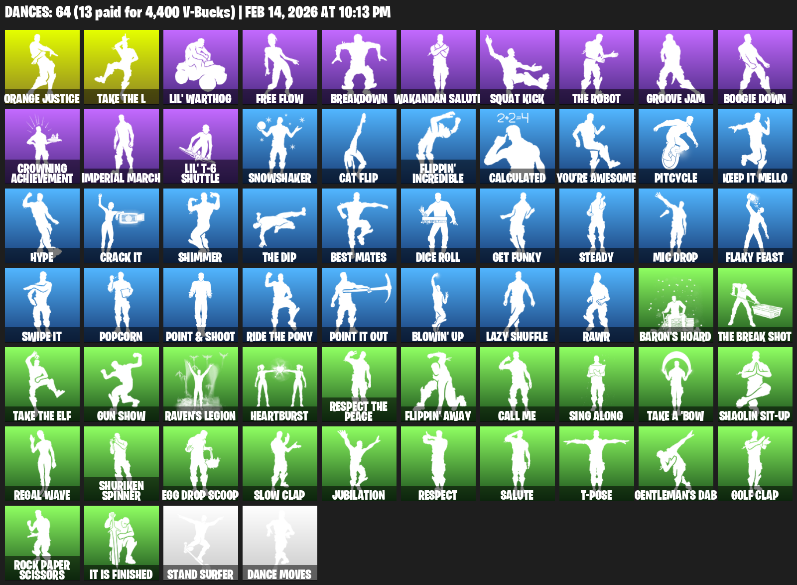 Orange Justice, Lil’ Warthog, Free Flow, Breakdown, Wakandan Salute, Squat Kick, Groove Jam, Boogie Down, Crowning Achievement, Imperial March, Snowshaker, Cat Flip, Flippin’ Incredible, Calculated, You’re Awesome, Pitcycle, Keep It Mello