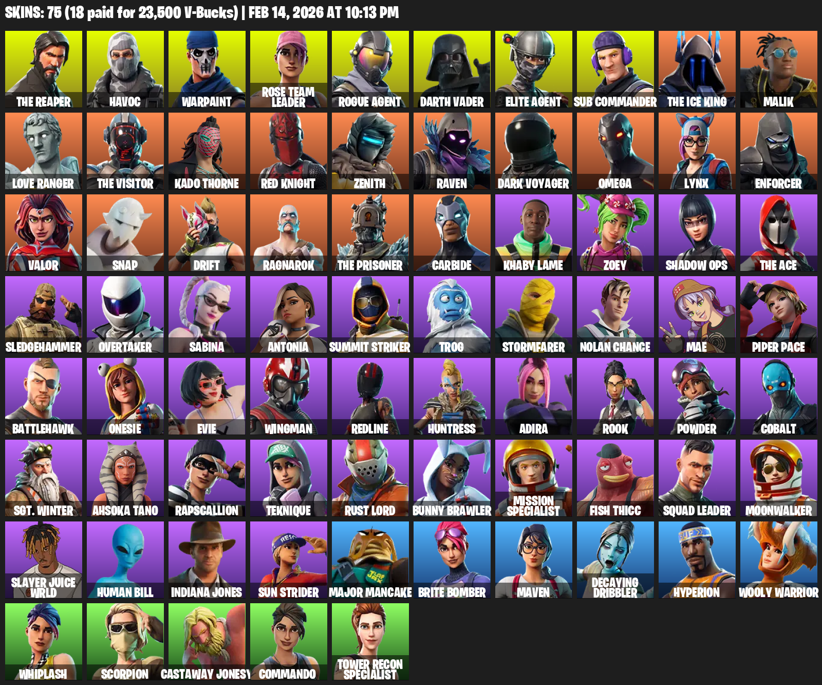 [PC/PSN/XBOX] | 75 skins | Take The L | OG STW | The Reaper | Elite Agent | Omega | Mako | Havoc | Warpaint | Rose Team Leader | #CZE8628